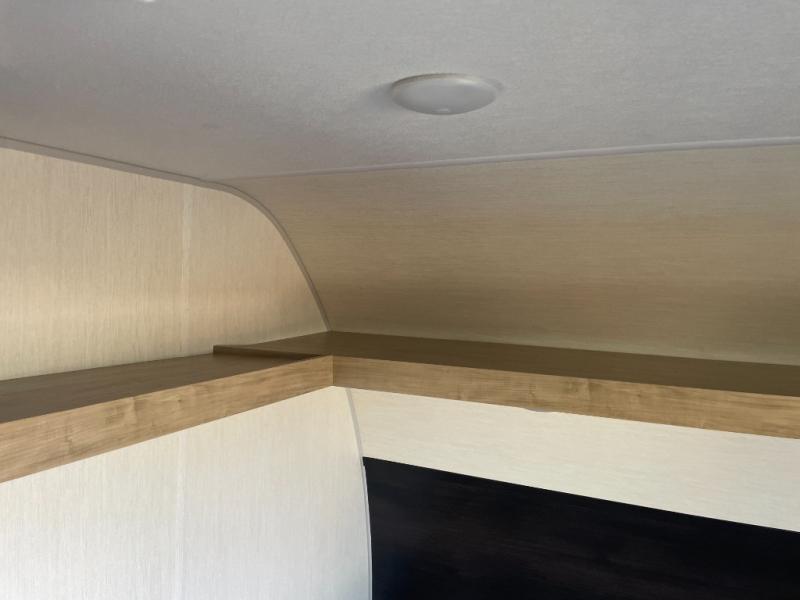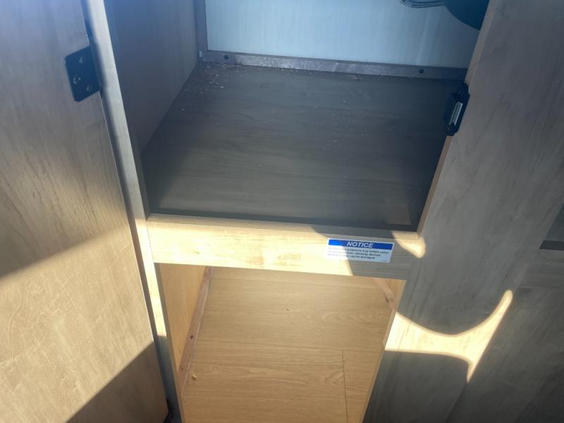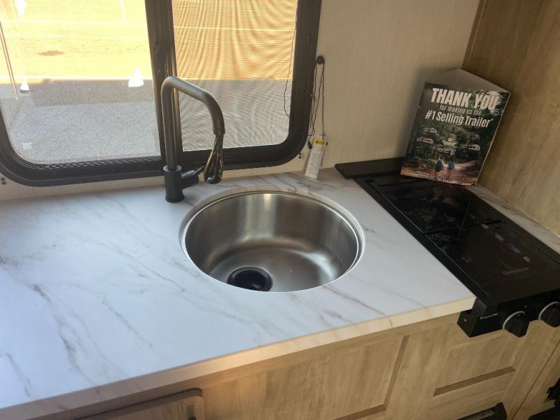 The whole family can sleep comfortably in this travel trailer! It has a set of bunk beds for the kids to sleep on, and you can sleep comfortably on the front queen bed with overhead cabinets and a shelf. The chef will enjoy preparing their best home cooked meals with the cooktop, and you can dine at the booth dinette. And the private bath onboard means you won't have to leave your camper in the middle of the night!