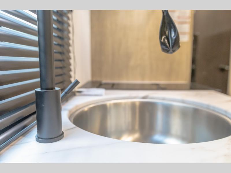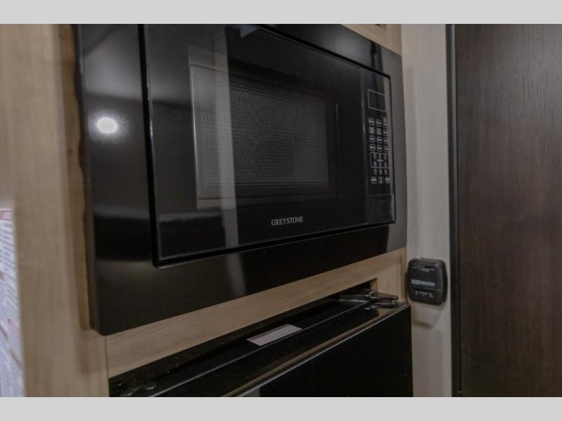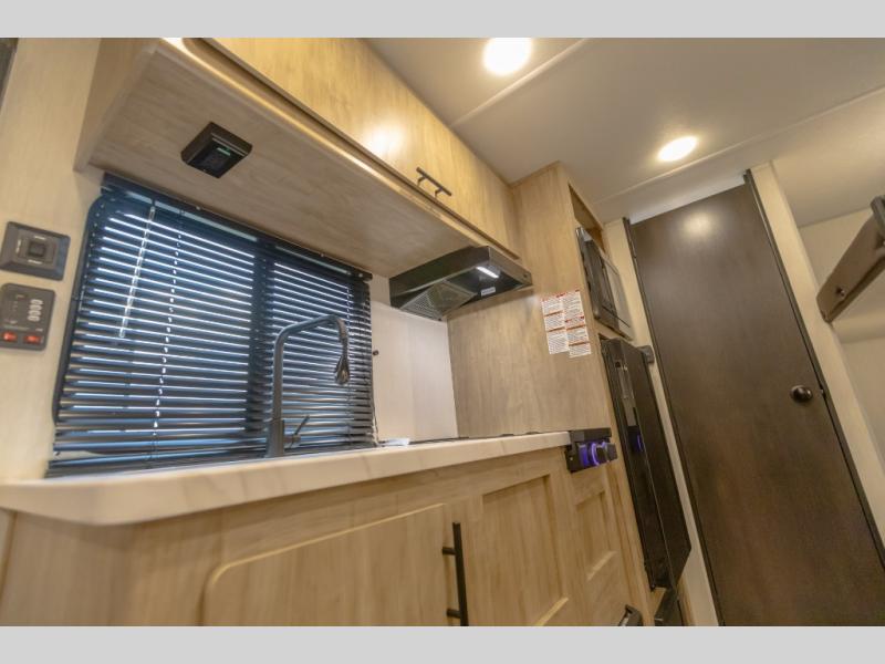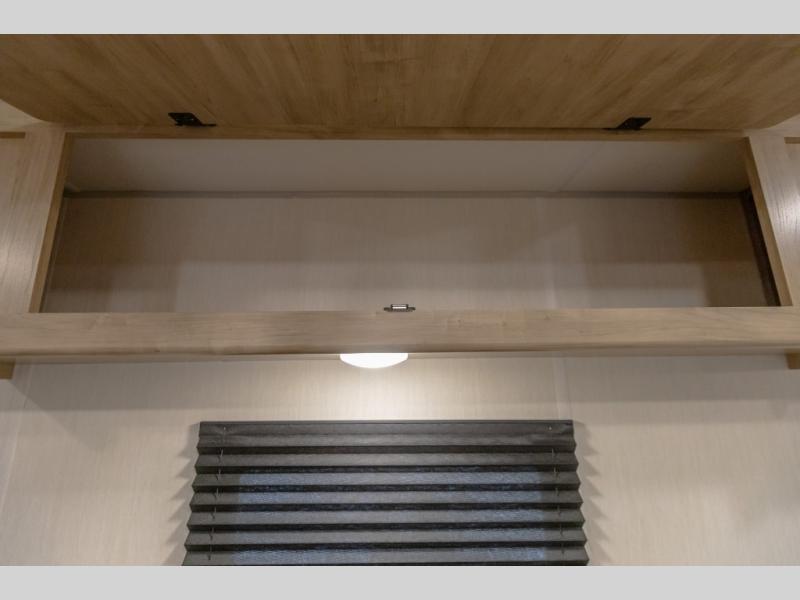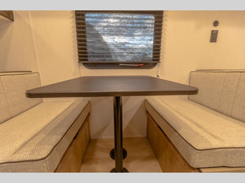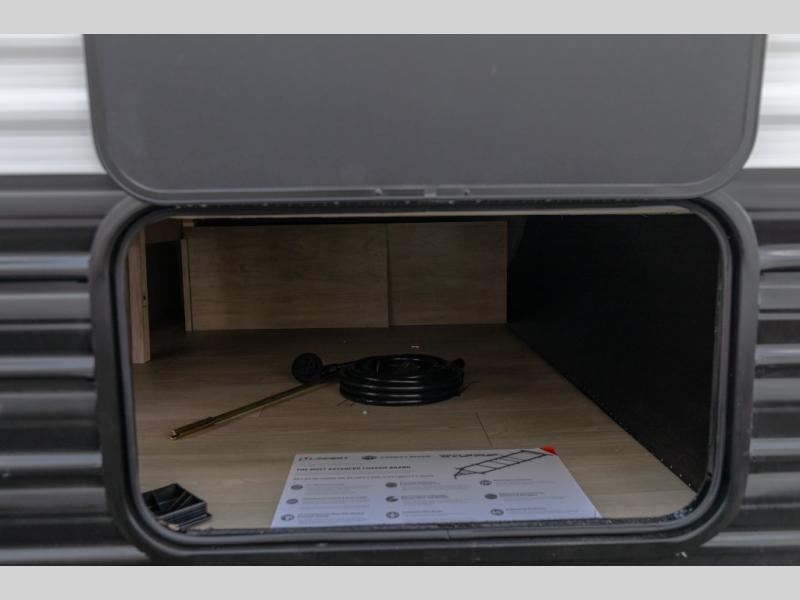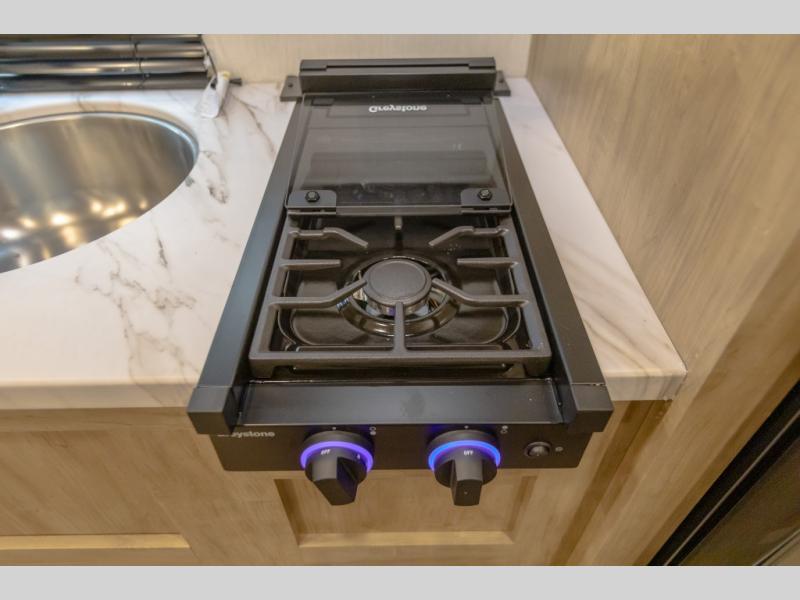 The whole family can sleep comfortably in this travel trailer! It has a set of bunk beds for the kids to sleep on, and you can sleep comfortably on the front queen bed with overhead cabinets and a shelf. The chef will enjoy preparing their best home cooked meals with the cooktop, and you can dine at the booth dinette. And the private bath onboard means you won't have to leave your camper in the middle of the night!