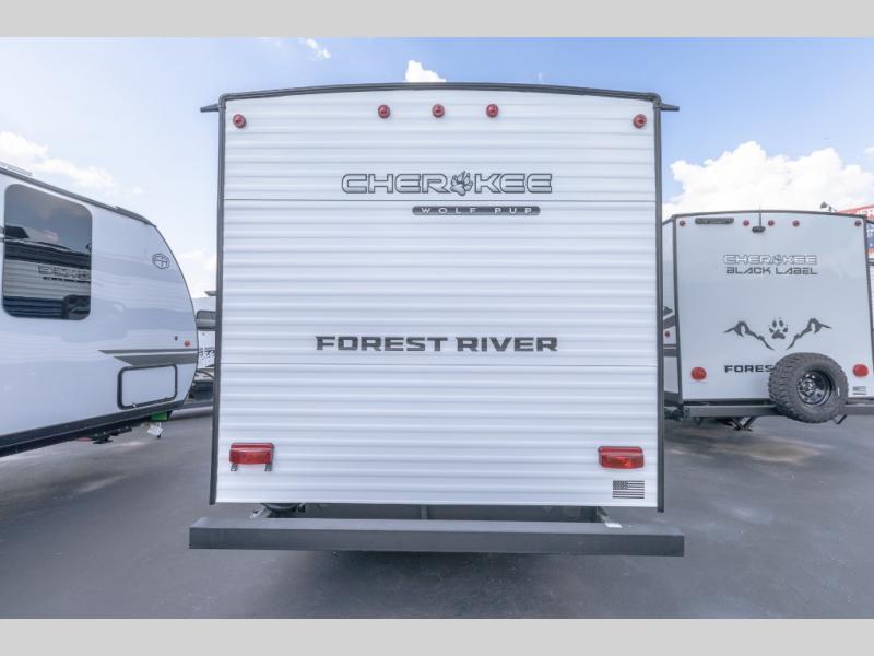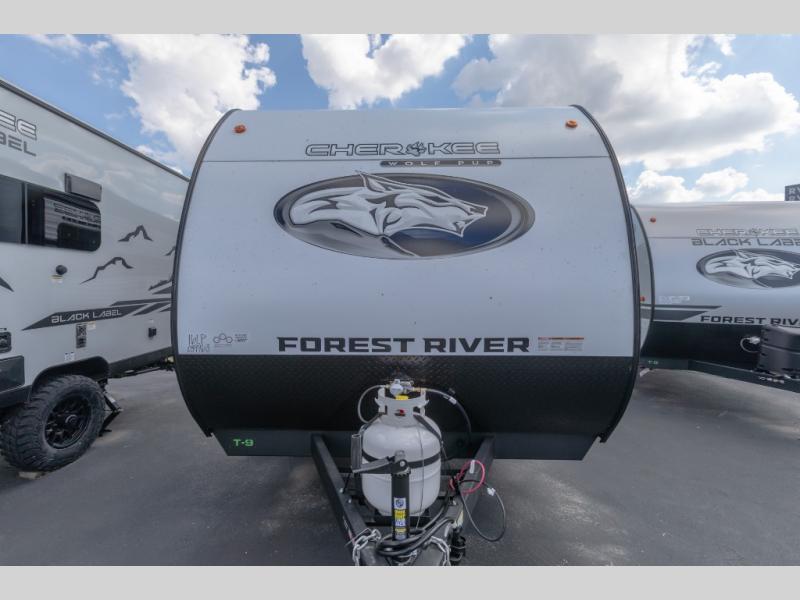 Each one of these Forest River Cherokee Wolf Pup travel trailers and toy hauler are lightweight and easy to tow! They are fully self-contained with ample tank capacities, an abundance of storage space, and filled with at home amenities. The full bath and kitchen amenities will make life at the campground easier than ever, and the outdoor patio awning will provide an inviting outdoor space!