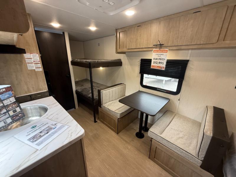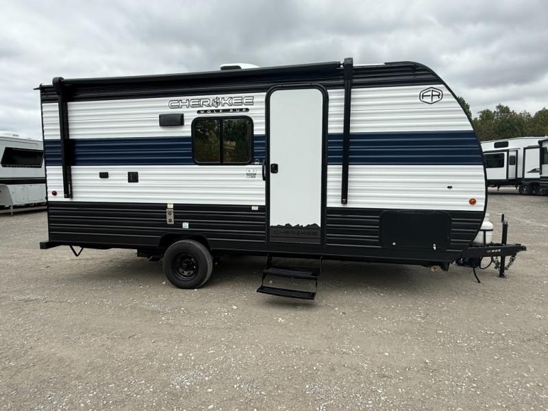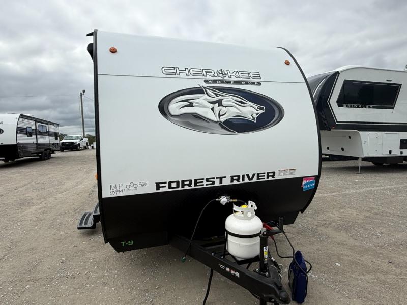 Each one of these Forest River Cherokee Wolf Pup travel trailers and toy hauler are lightweight and easy to tow! They are fully self-contained with ample tank capacities, an abundance of storage space, and filled with at home amenities. The full bath and kitchen amenities will make life at the campground easier than ever, and the outdoor patio awning will provide an inviting outdoor space!