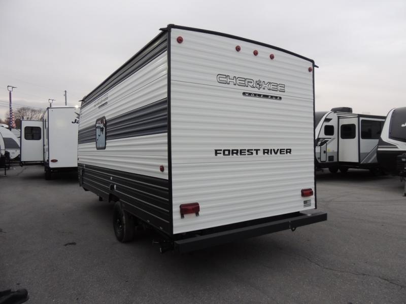 Each one of these Forest River Cherokee Wolf Pup travel trailers and toy hauler are lightweight and easy to tow! They are fully self-contained with ample tank capacities, an abundance of storage space, and filled with at home amenities. The full bath and kitchen amenities will make life at the campground easier than ever, and the outdoor patio awning will provide an inviting outdoor space!