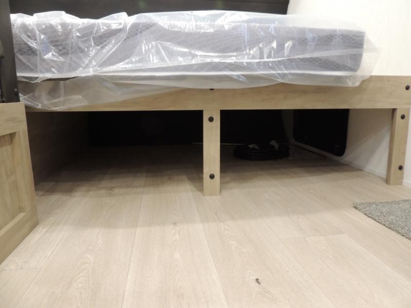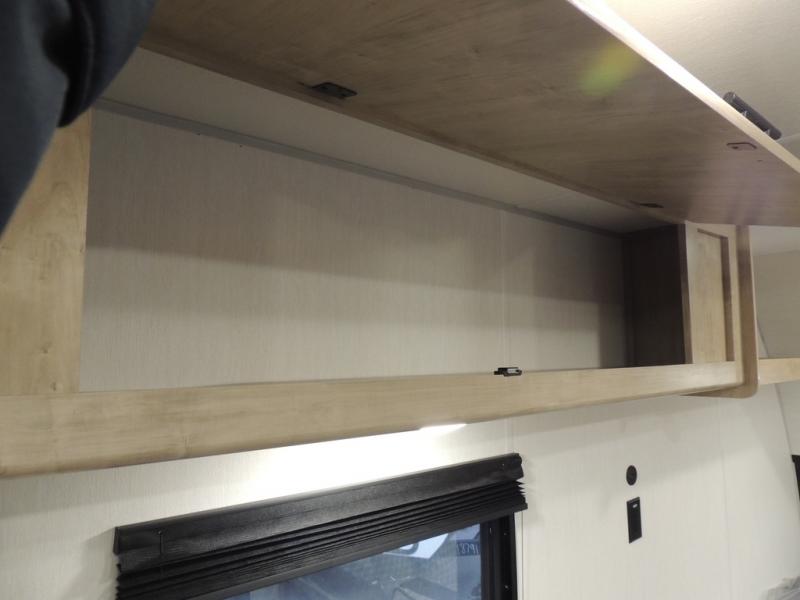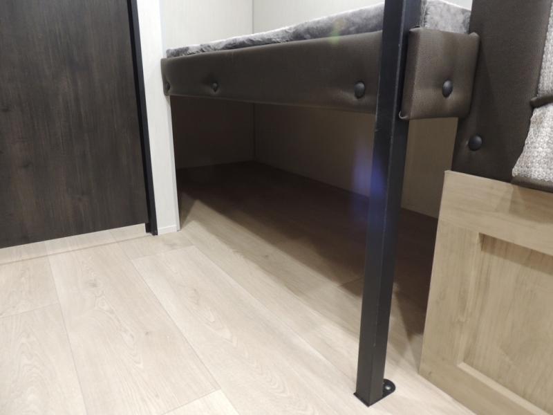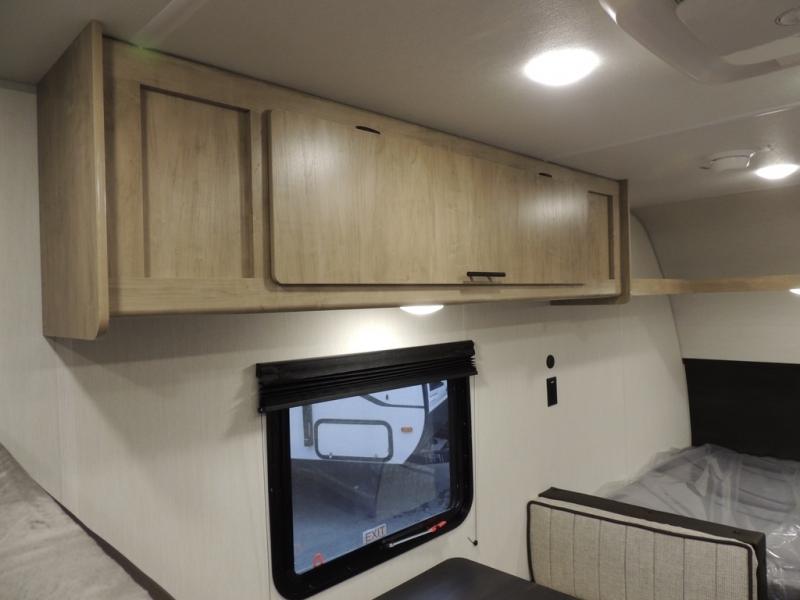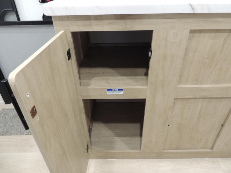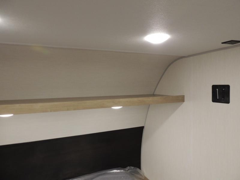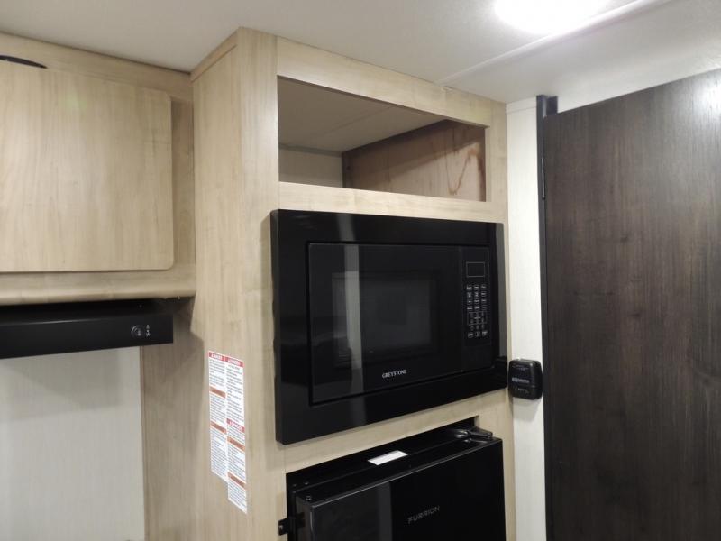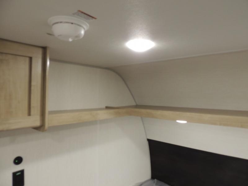 The whole family can sleep comfortably in this travel trailer! It has a set of bunk beds for the kids to sleep on, and you can sleep comfortably on the front queen bed with overhead cabinets and a shelf. The chef will enjoy preparing their best home cooked meals with the cooktop, and you can dine at the booth dinette. And the private bath onboard means you won't have to leave your camper in the middle of the night!