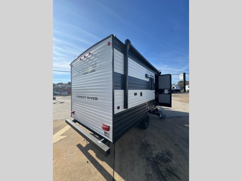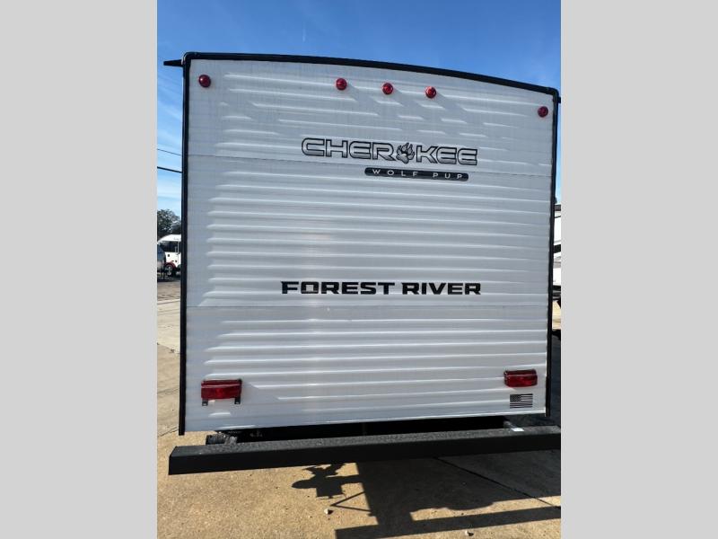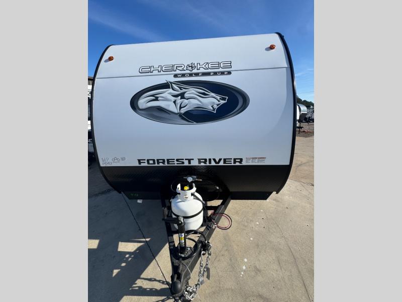 Each one of these Forest River Cherokee Wolf Pup travel trailers and toy hauler are lightweight and easy to tow! They are fully self-contained with ample tank capacities, an abundance of storage space, and filled with at home amenities. The full bath and kitchen amenities will make life at the campground easier than ever, and the outdoor patio awning will provide an inviting outdoor space!