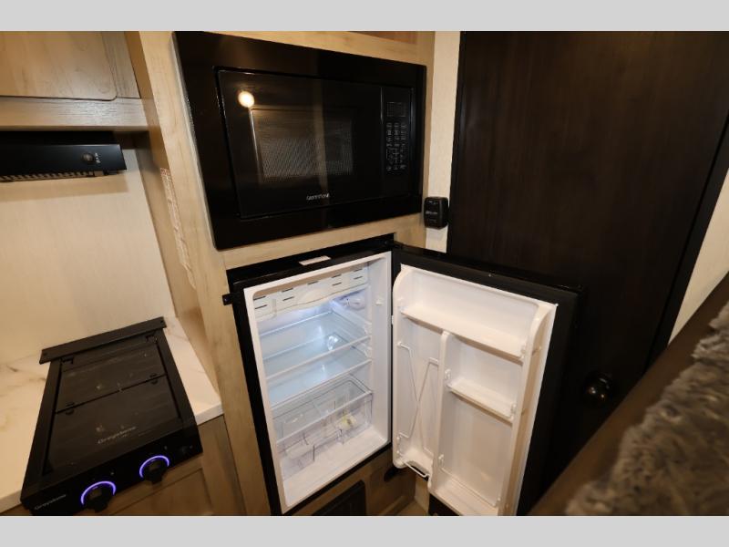 The whole family can sleep comfortably in this travel trailer! It has a set of bunk beds for the kids to sleep on, and you can sleep comfortably on the front queen bed with overhead cabinets and a shelf. The chef will enjoy preparing their best home cooked meals with the cooktop, and you can dine at the booth dinette. And the private bath onboard means you won't have to leave your camper in the middle of the night!