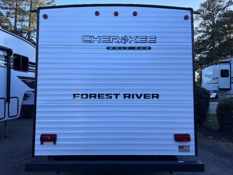 Each one of these Forest River Cherokee Wolf Pup travel trailers and toy hauler are lightweight and easy to tow! They are fully self-contained with ample tank capacities, an abundance of storage space, and filled with at home amenities. The full bath and kitchen amenities will make life at the campground easier than ever, and the outdoor patio awning will provide an inviting outdoor space!