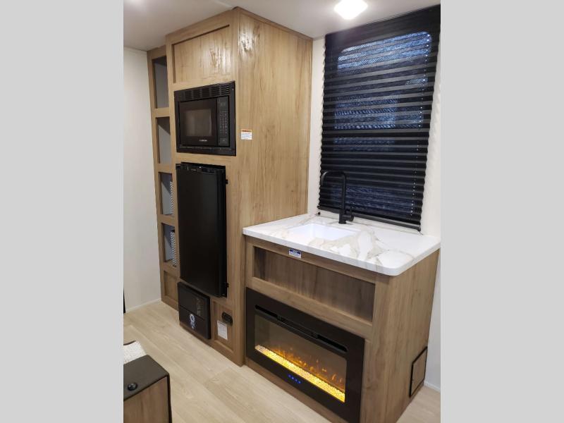 Each one of these Forest River Cherokee Wolf Pup EV travel trailers are ready for adventure when you are! They feature reflective solar bronzed windows, a quick drop jack, a friction hinge entry door, and dual rear jacks. You'll stay comfortable with the 13,500 BTU roof mounted A/C and 5,000 BTU electric fireplace, plus there is a turbo hot water heater so you can take hot showers each day. Inside, night shades and residential style mattresses will provide comfort, and there are storage bins to keep your things organized.