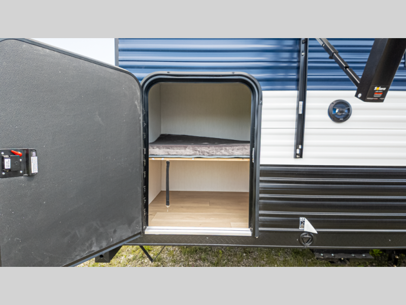 - Rugged upgrades: 200 W solar, tankless water heater, tire pressure monitors, backup camera, LED awning lighting, subwoofer—all range-ready