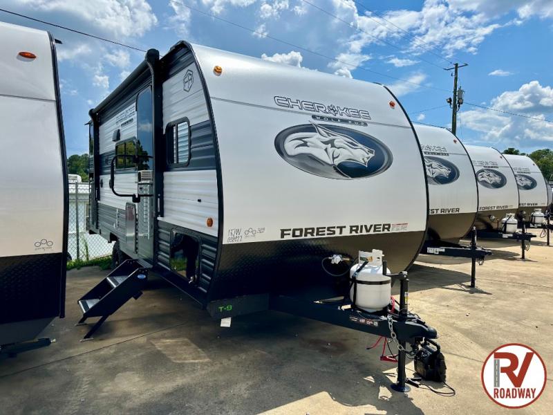 Each one of these Forest River Cherokee Wolf Pup travel trailers are lightweight and easy to tow! They are fully self contained with ample tank capacities, an abundance of storage space, and filled with at home amenities. The aerodynamic smooth radius front profile, the Power Gear frame technology, and the space saver rail design make them easier to maneuver. You will also appreciate the seamless roofing membrane with heat reflectivity to keep the sun from making your unit a hot box. The tongue and groove plywood flooring will hold up for years of fun and the USB charging stations help to keep your electronics at 100% while you're away. Come find the best model for you today!