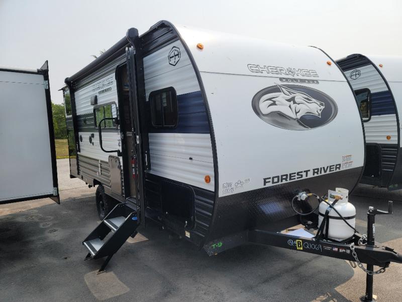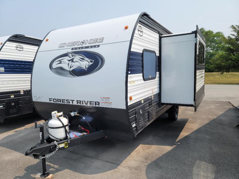 Each one of these Forest River Cherokee Wolf Pup travel trailers are lightweight and easy to tow! They are fully self contained with ample tank capacities, an abundance of storage space, and filled with at home amenities. The aerodynamic smooth radius front profile, the Power Gear frame technology, and the space saver rail design make them easier to maneuver. You will also appreciate the seamless roofing membrane with heat reflectivity to keep the sun from making your unit a hot box. The tongue and groove plywood flooring will hold up for years of fun and the USB charging stations help to keep your electronics at 100% while you're away. Come find the best model for you today!