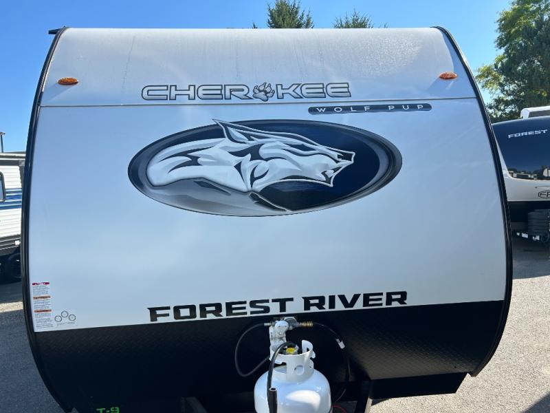 Each one of these Forest River Cherokee Wolf Pup travel trailers are lightweight and easy to tow! They are fully self contained with ample tank capacities, an abundance of storage space, and filled with at home amenities. The aerodynamic smooth radius front profile, the Power Gear frame technology, and the space saver rail design make them easier to maneuver. You will also appreciate the seamless roofing membrane with heat reflectivity to keep the sun from making your unit a hot box. The tongue and groove plywood flooring will hold up for years of fun and the USB charging stations help to keep your electronics at 100% while you're away. Come find the best model for you today!