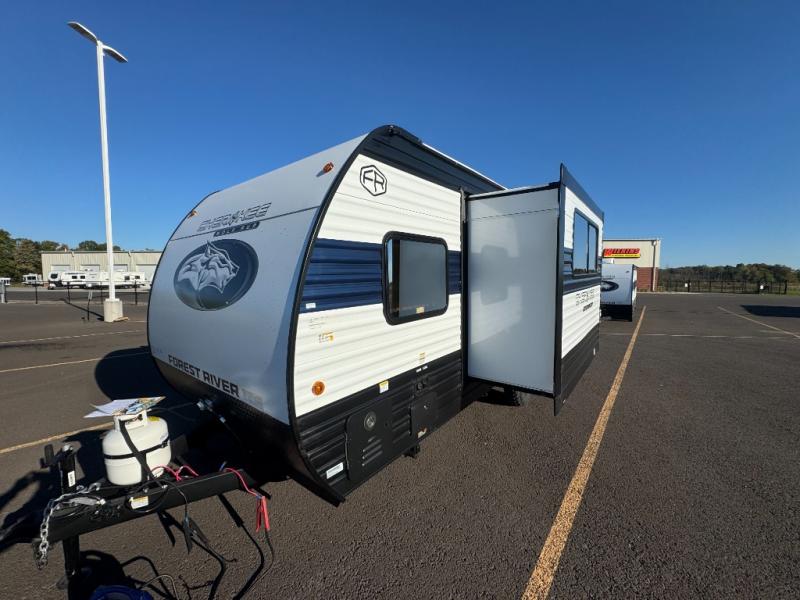 Each one of these Forest River Cherokee Wolf Pup travel trailers and toy hauler are lightweight and easy to tow! They are fully self-contained with ample tank capacities, an abundance of storage space, and filled with at home amenities. The full bath and kitchen amenities will make life at the campground easier than ever, and the outdoor patio awning will provide an inviting outdoor space!