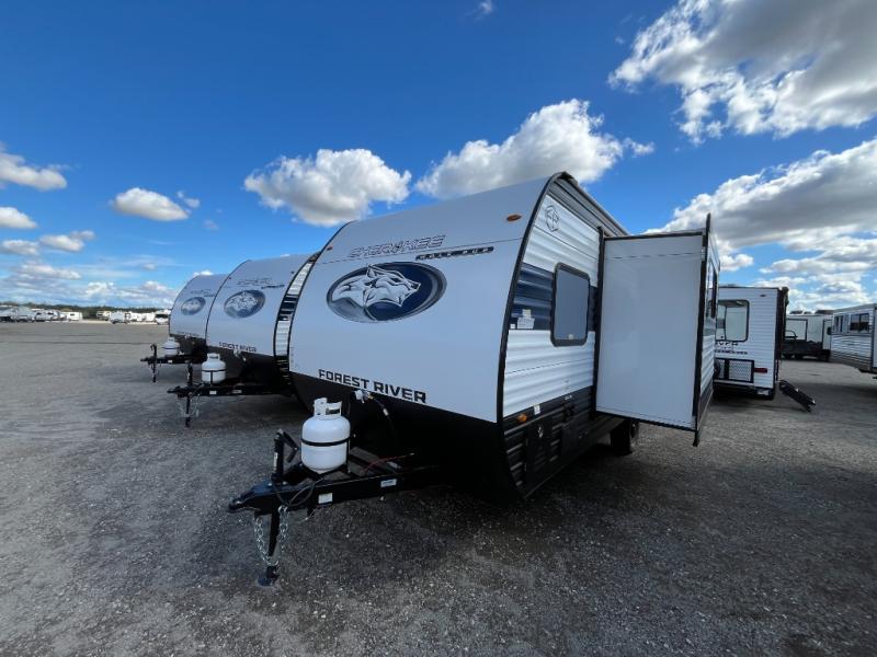 Each one of these Forest River Cherokee Wolf Pup travel trailers and toy hauler are lightweight and easy to tow! They are fully self-contained with ample tank capacities, an abundance of storage space, and filled with at home amenities. The full bath and kitchen amenities will make life at the campground easier than ever, and the outdoor patio awning will provide an inviting outdoor space!
