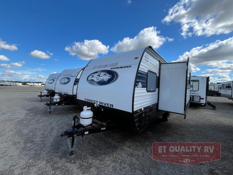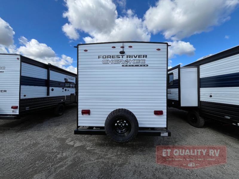 Each one of these Forest River Cherokee Wolf Pup travel trailers and toy hauler are lightweight and easy to tow! They are fully self-contained with ample tank capacities, an abundance of storage space, and filled with at home amenities. The full bath and kitchen amenities will make life at the campground easier than ever, and the outdoor patio awning will provide an inviting outdoor space!