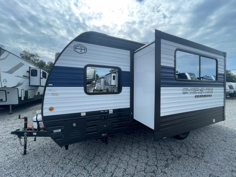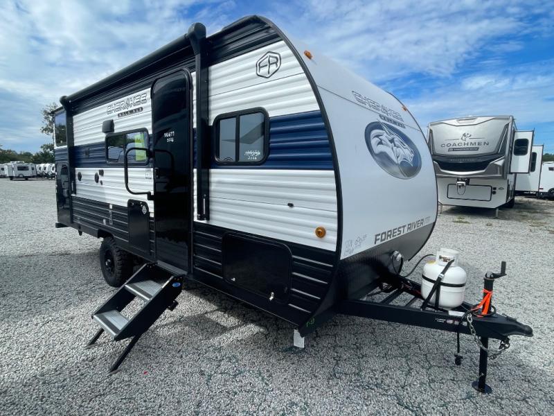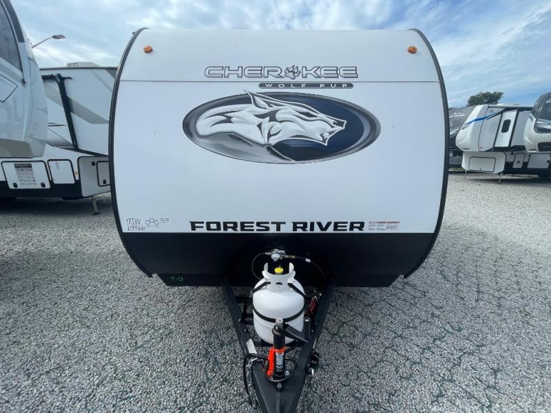 Each one of these Forest River Cherokee Wolf Pup travel trailers and toy hauler are lightweight and easy to tow! They are fully self-contained with ample tank capacities, an abundance of storage space, and filled with at home amenities. The full bath and kitchen amenities will make life at the campground easier than ever, and the outdoor patio awning will provide an inviting outdoor space!