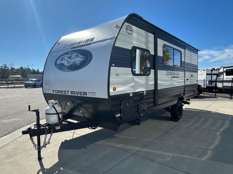 Each one of these Forest River Cherokee Wolf Pup travel trailers and toy hauler are lightweight and easy to tow! They are fully self-contained with ample tank capacities, an abundance of storage space, and filled with at home amenities. The full bath and kitchen amenities will make life at the campground easier than ever, and the outdoor patio awning will provide an inviting outdoor space!