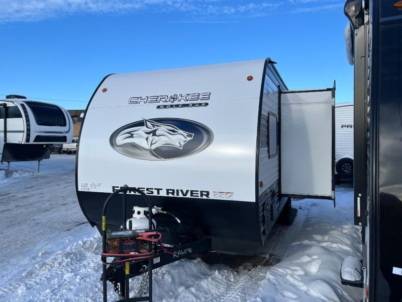 Each one of these Forest River Cherokee Wolf Pup travel trailers and toy hauler are lightweight and easy to tow! They are fully self-contained with ample tank capacities, an abundance of storage space, and filled with at home amenities. The full bath and kitchen amenities will make life at the campground easier than ever, and the outdoor patio awning will provide an inviting outdoor space!