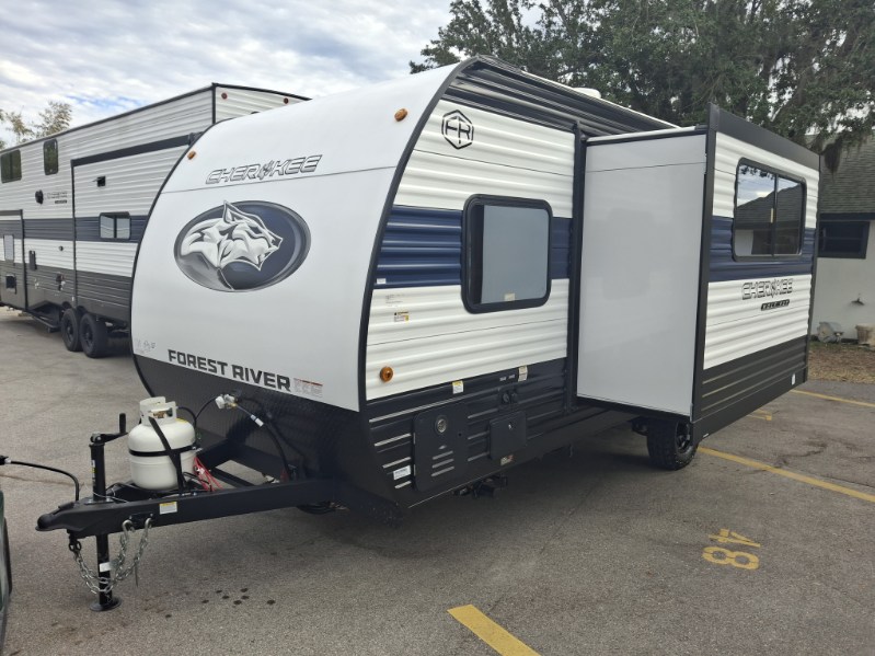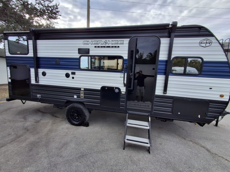 Each one of these Forest River Cherokee Wolf Pup travel trailers and toy hauler are lightweight and easy to tow! They are fully self-contained with ample tank capacities, an abundance of storage space, and filled with at home amenities. The full bath and kitchen amenities will make life at the campground easier than ever, and the outdoor patio awning will provide an inviting outdoor space!