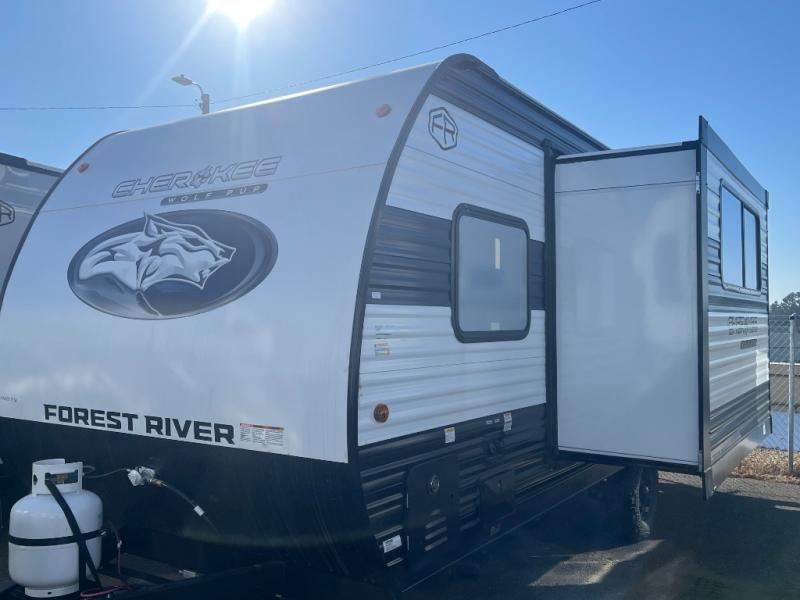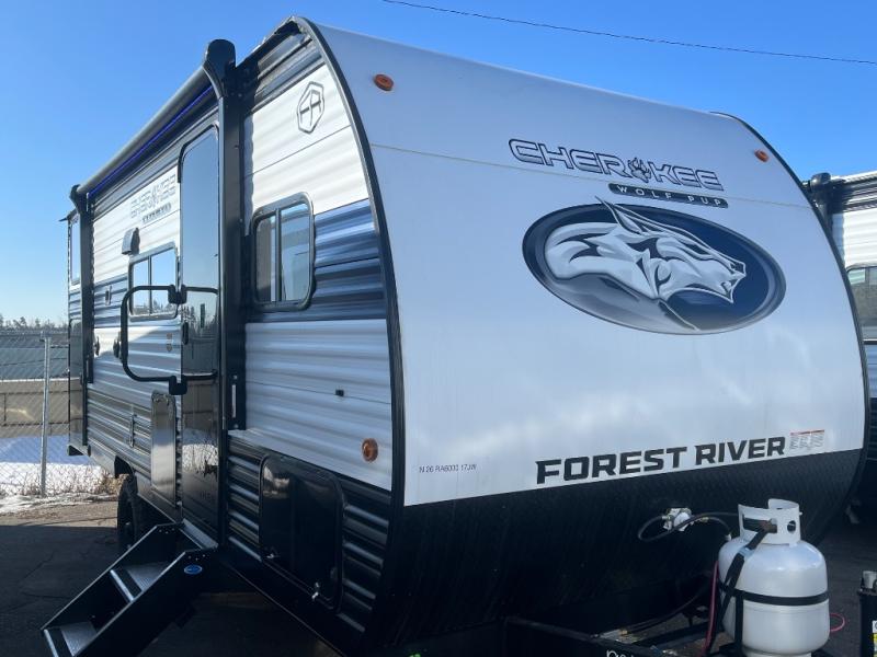 Each one of these Forest River Cherokee Wolf Pup travel trailers and toy hauler are lightweight and easy to tow! They are fully self-contained with ample tank capacities, an abundance of storage space, and filled with at home amenities. The full bath and kitchen amenities will make life at the campground easier than ever, and the outdoor patio awning will provide an inviting outdoor space!