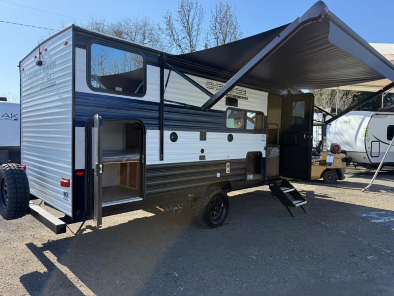Each one of these Forest River Cherokee Wolf Pup travel trailers and toy hauler are lightweight and easy to tow! They are fully self-contained with ample tank capacities, an abundance of storage space, and filled with at home amenities. The full bath and kitchen amenities will make life at the campground easier than ever, and the outdoor patio awning will provide an inviting outdoor space!