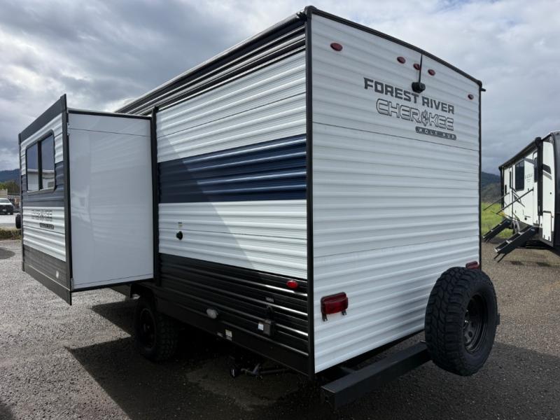Each one of these Forest River Cherokee Wolf Pup travel trailers and toy hauler are lightweight and easy to tow! They are fully self-contained with ample tank capacities, an abundance of storage space, and filled with at home amenities. The full bath and kitchen amenities will make life at the campground easier than ever, and the outdoor patio awning will provide an inviting outdoor space!