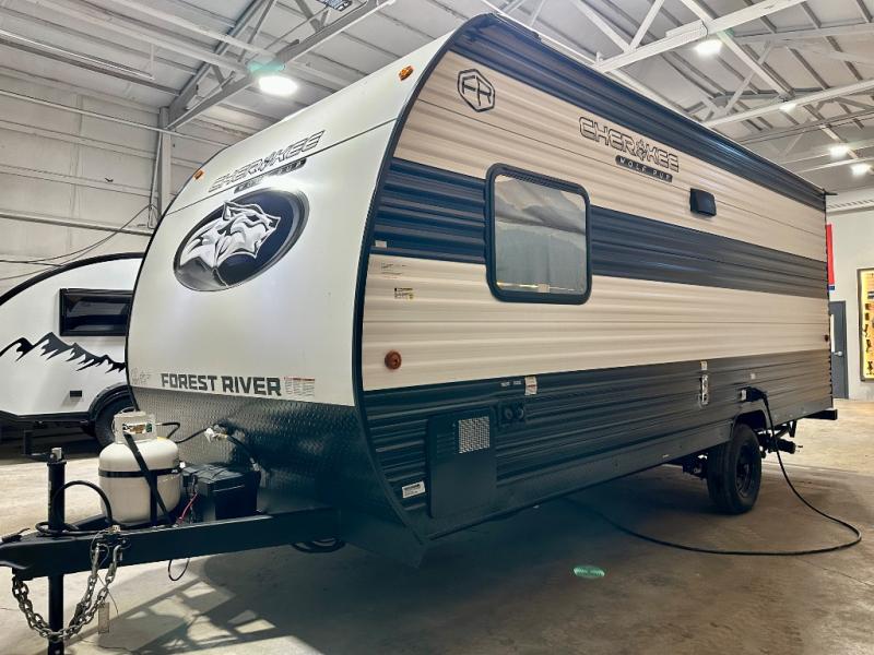 Each one of these Forest River Cherokee Wolf Pup travel trailers and toy hauler are lightweight and easy to tow! They are fully self-contained with ample tank capacities, an abundance of storage space, and filled with at home amenities. The full bath and kitchen amenities will make life at the campground easier than ever, and the outdoor patio awning will provide an inviting outdoor space!