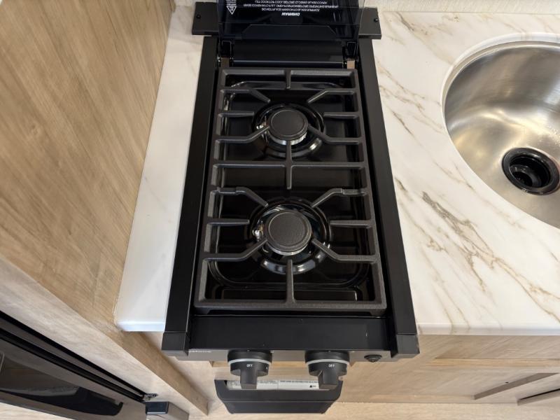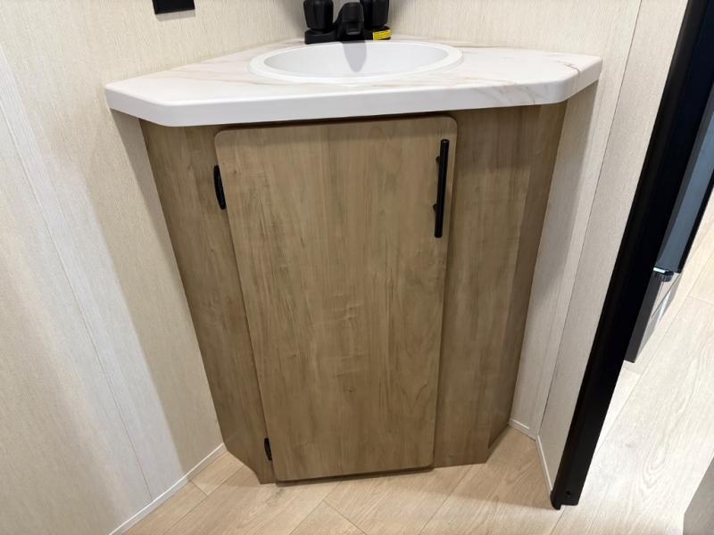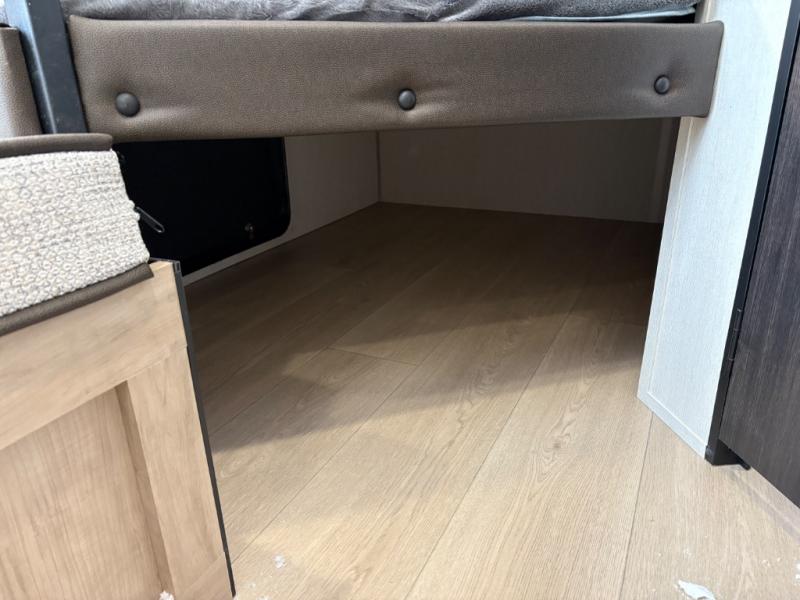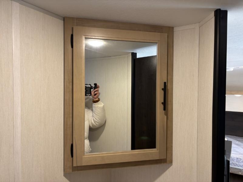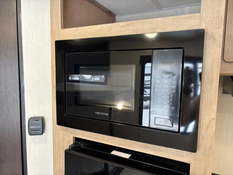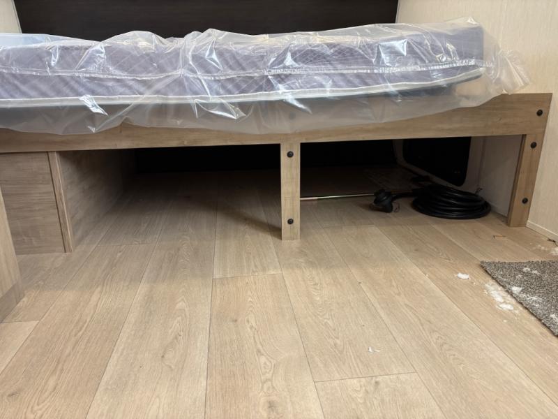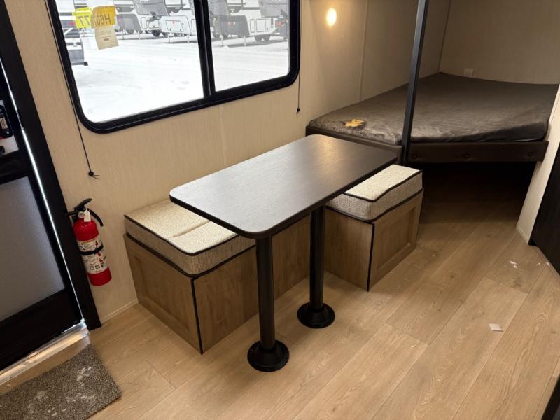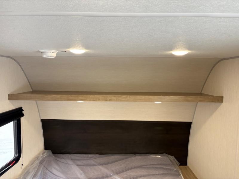 Create amazing memories in this stunning travel trailer! It is perfect for at least six people, thanks to its multiple sleeping spaces. The spacious double-sized bunk beds are ideal for kids or guests, while the plush queen-sized bed provides a restful retreat for adults. The full bathroom is equipped with everything you need for a comfortable stay, and the kitchen features a refrigerator and microwave for you to go wild in the kitchen. You can also gather around the dinette for meals and snacks, or relax in the evenings under the protection of the exterior awning. In addition, ample overhead cabinets provide storage for cookware, dishes, and essentials, keeping your trailer tidy and organized.