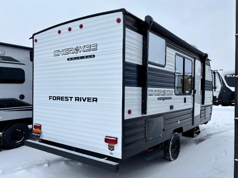 Each one of these Forest River Cherokee Wolf Pup travel trailers and toy hauler are lightweight and easy to tow! They are fully self-contained with ample tank capacities, an abundance of storage space, and filled with at home amenities. The full bath and kitchen amenities will make life at the campground easier than ever, and the outdoor patio awning will provide an inviting outdoor space!