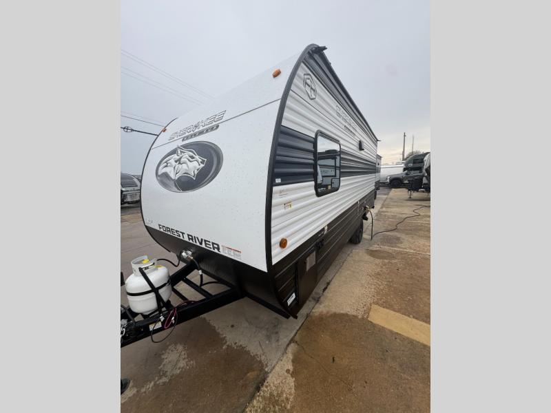 Each one of these Forest River Cherokee Wolf Pup travel trailers and toy hauler are lightweight and easy to tow! They are fully self-contained with ample tank capacities, an abundance of storage space, and filled with at home amenities. The full bath and kitchen amenities will make life at the campground easier than ever, and the outdoor patio awning will provide an inviting outdoor space!