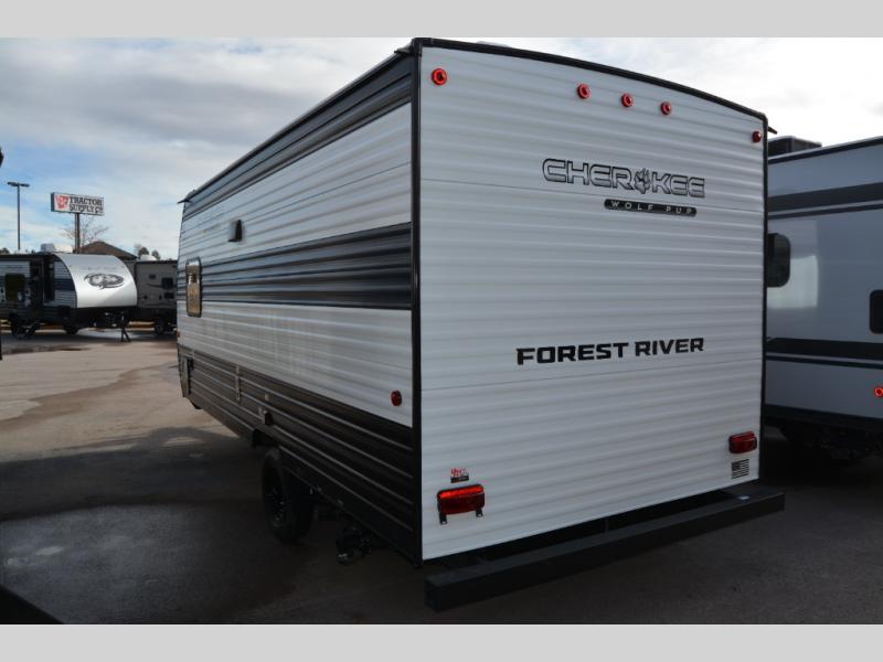 Each one of these Forest River Cherokee Wolf Pup travel trailers and toy hauler are lightweight and easy to tow! They are fully self-contained with ample tank capacities, an abundance of storage space, and filled with at home amenities. The full bath and kitchen amenities will make life at the campground easier than ever, and the outdoor patio awning will provide an inviting outdoor space!