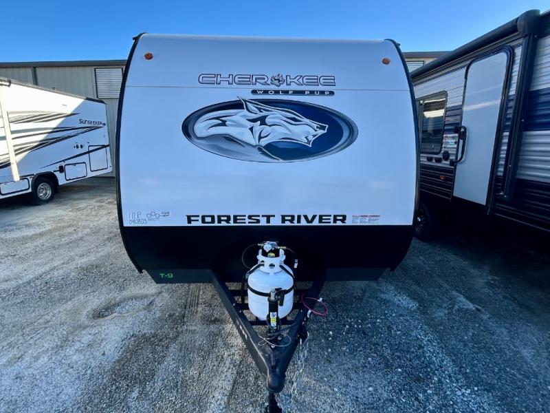 Each one of these Forest River Cherokee Wolf Pup travel trailers and toy hauler are lightweight and easy to tow! They are fully self-contained with ample tank capacities, an abundance of storage space, and filled with at home amenities. The full bath and kitchen amenities will make life at the campground easier than ever, and the outdoor patio awning will provide an inviting outdoor space!