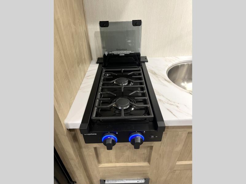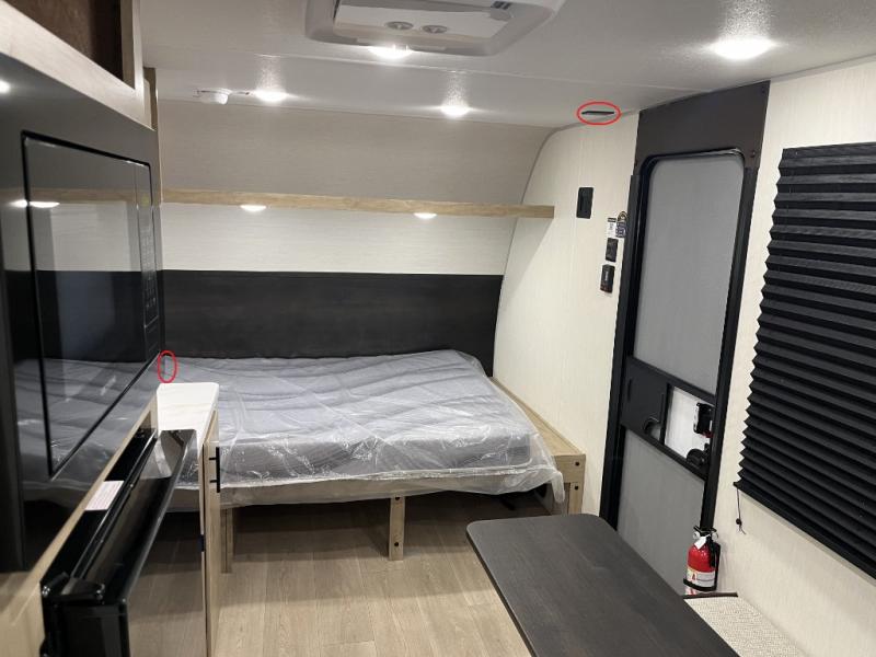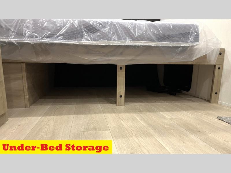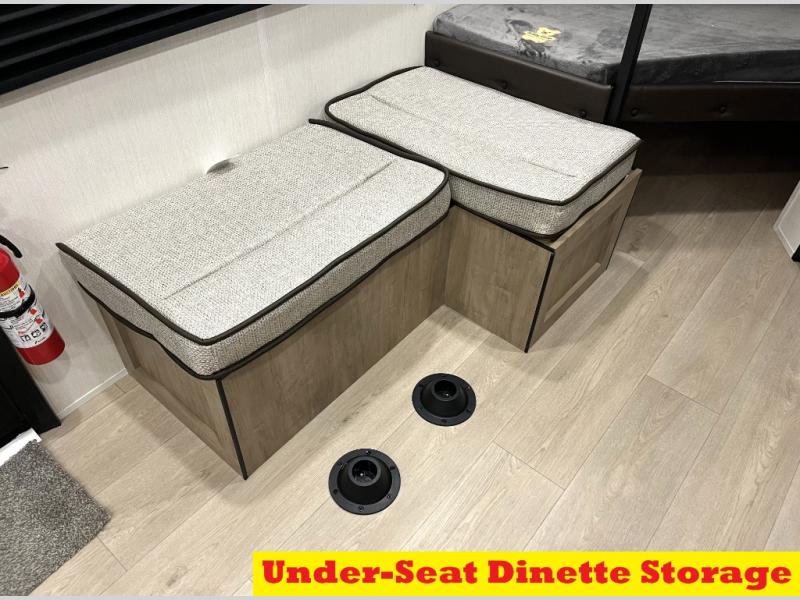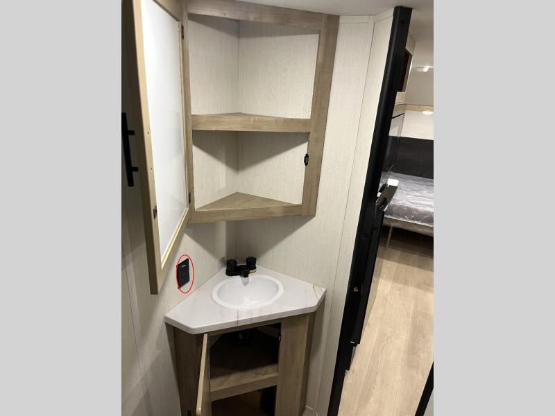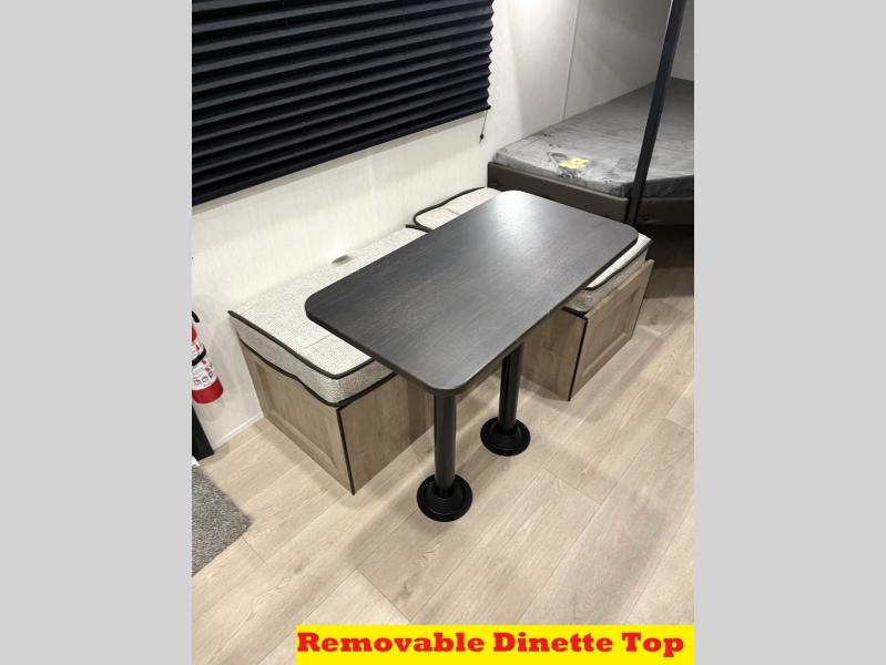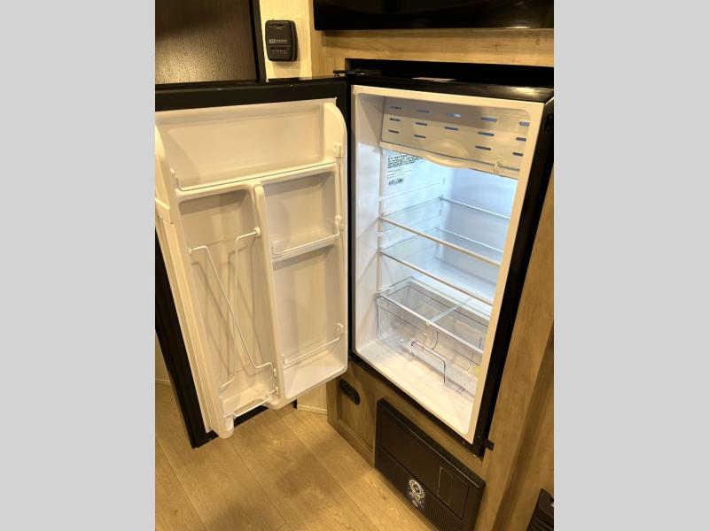 Create amazing memories in this stunning travel trailer! It is perfect for at least six people, thanks to its multiple sleeping spaces. The spacious double-sized bunk beds are ideal for kids or guests, while the plush queen-sized bed provides a restful retreat for adults. The full bathroom is equipped with everything you need for a comfortable stay, and the kitchen features a refrigerator and microwave for you to go wild in the kitchen. You can also gather around the dinette for meals and snacks, or relax in the evenings under the protection of the exterior awning. In addition, ample overhead cabinets provide storage for cookware, dishes, and essentials, keeping your trailer tidy and organized.