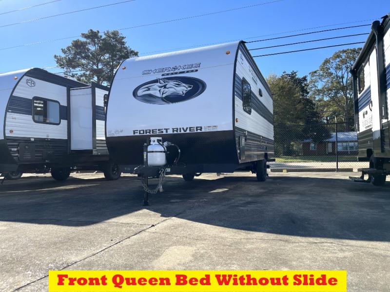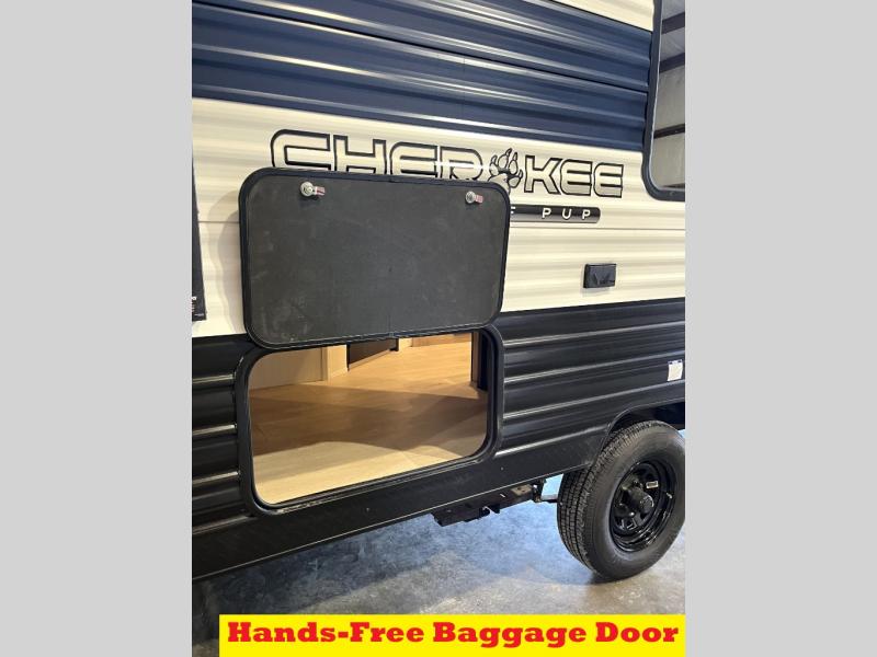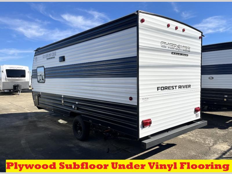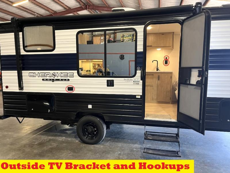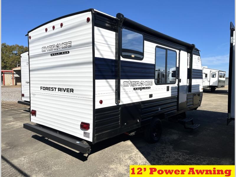 Each one of these Forest River Cherokee Wolf Pup travel trailers and toy hauler are lightweight and easy to tow! They are fully self-contained with ample tank capacities, an abundance of storage space, and filled with at home amenities. The full bath and kitchen amenities will make life at the campground easier than ever, and the outdoor patio awning will provide an inviting outdoor space!