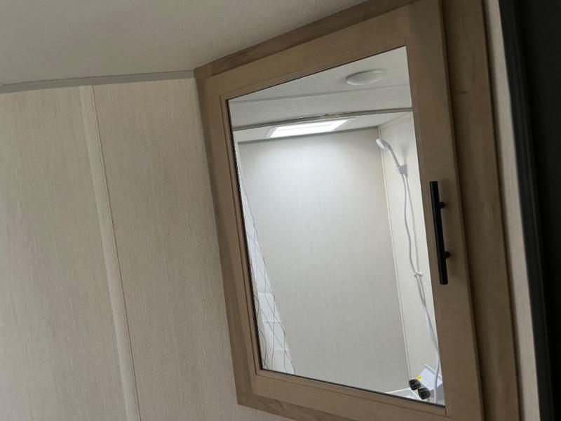 Create amazing memories in this stunning travel trailer! It is perfect for at least six people, thanks to its multiple sleeping spaces. The spacious double-sized bunk beds are ideal for kids or guests, while the plush queen-sized bed provides a restful retreat for adults. The full bathroom is equipped with everything you need for a comfortable stay, and the kitchen features a refrigerator and microwave for you to go wild in the kitchen. You can also gather around the dinette for meals and snacks, or relax in the evenings under the protection of the exterior awning. In addition, ample overhead cabinets provide storage for cookware, dishes, and essentials, keeping your trailer tidy and organized.