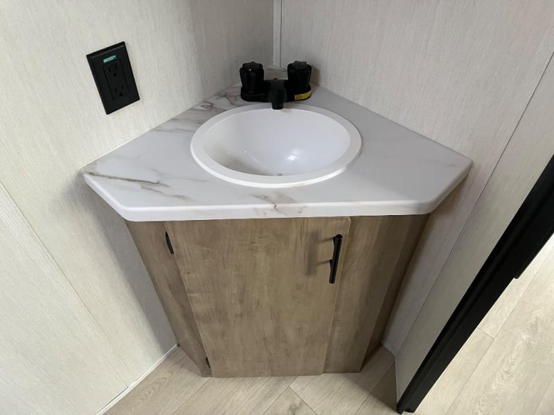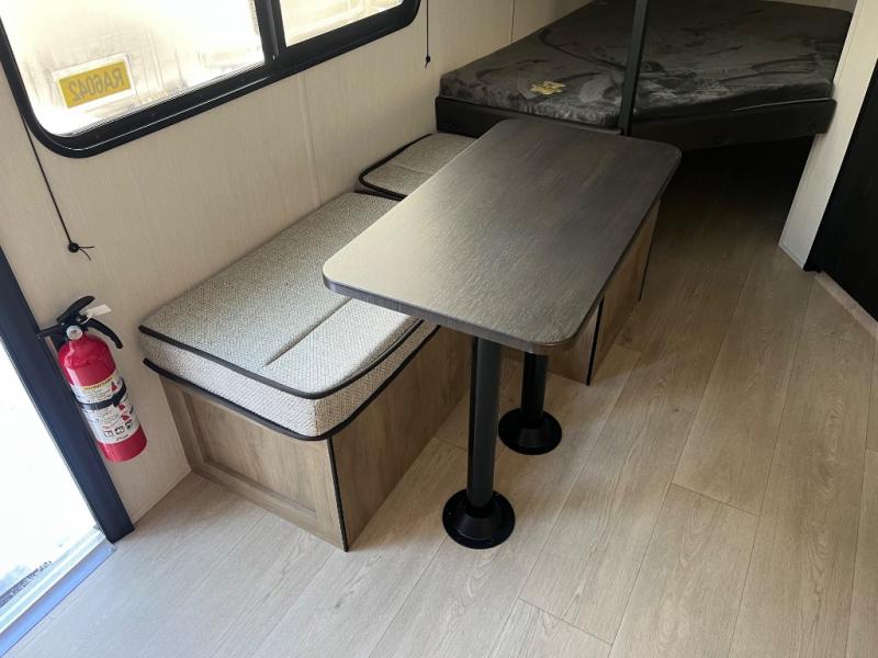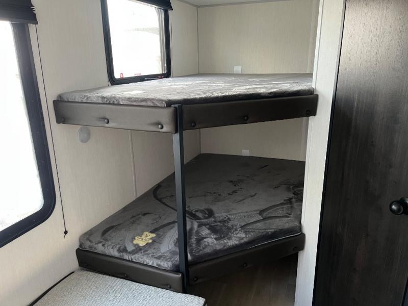 Create amazing memories in this stunning travel trailer! It is perfect for at least six people, thanks to its multiple sleeping spaces. The spacious double-sized bunk beds are ideal for kids or guests, while the plush queen-sized bed provides a restful retreat for adults. The full bathroom is equipped with everything you need for a comfortable stay, and the kitchen features a refrigerator and microwave for you to go wild in the kitchen. You can also gather around the dinette for meals and snacks, or relax in the evenings under the protection of the exterior awning. In addition, ample overhead cabinets provide storage for cookware, dishes, and essentials, keeping your trailer tidy and organized.