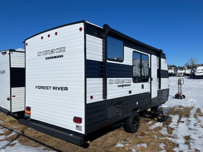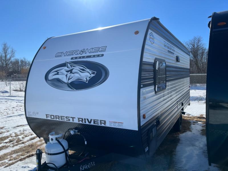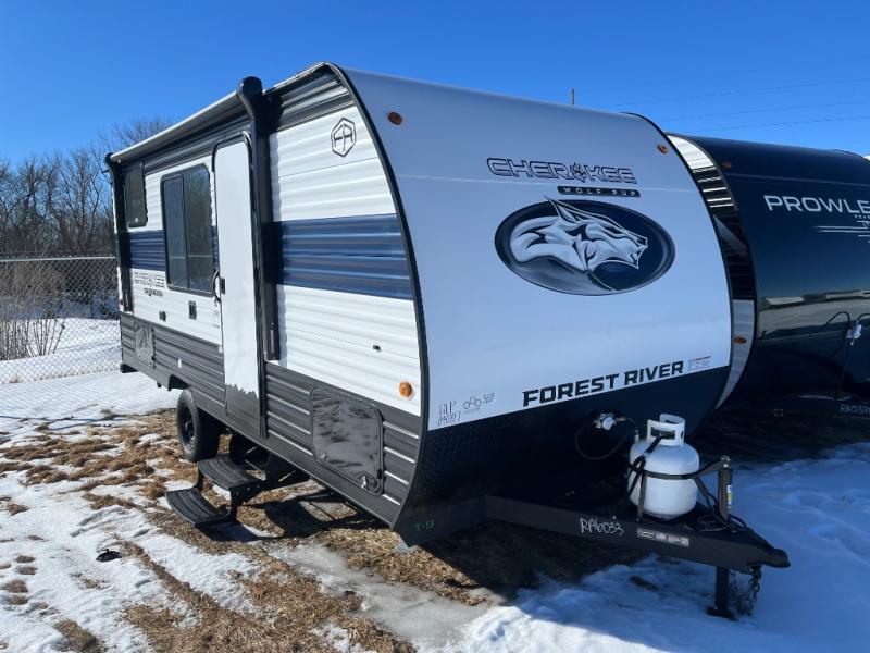 Each one of these Forest River Cherokee Wolf Pup travel trailers and toy hauler are lightweight and easy to tow! They are fully self-contained with ample tank capacities, an abundance of storage space, and filled with at home amenities. The full bath and kitchen amenities will make life at the campground easier than ever, and the outdoor patio awning will provide an inviting outdoor space!