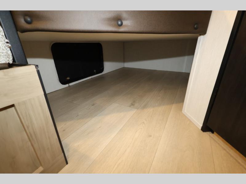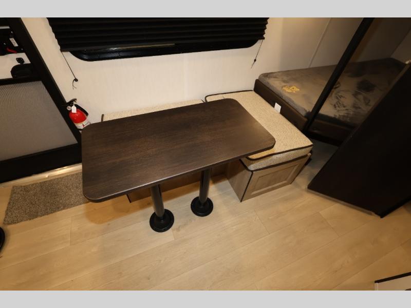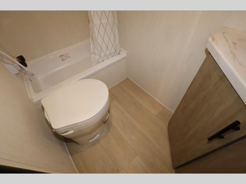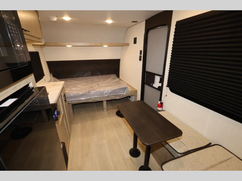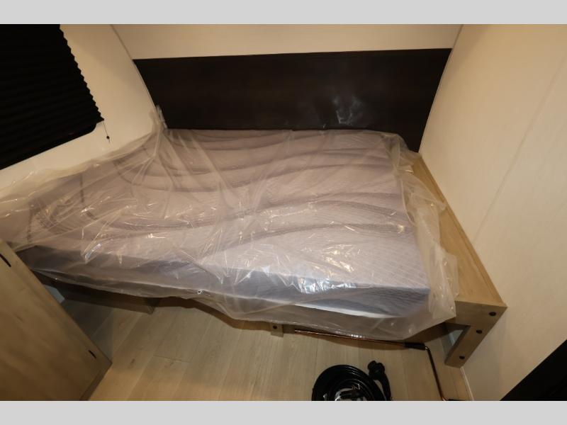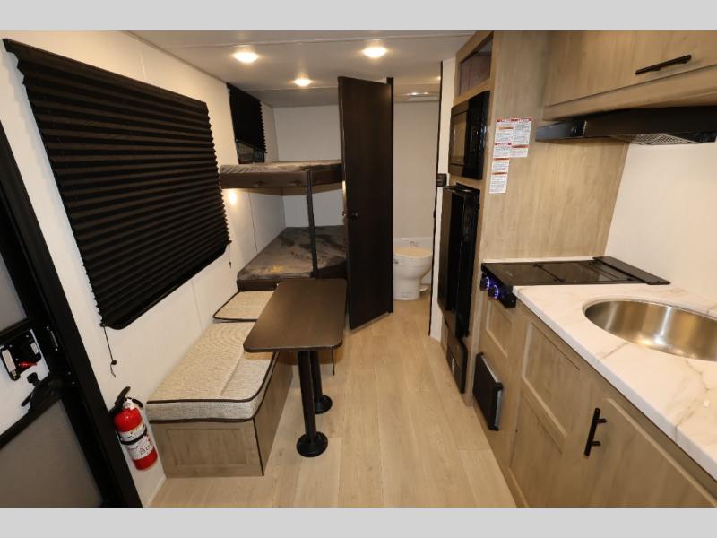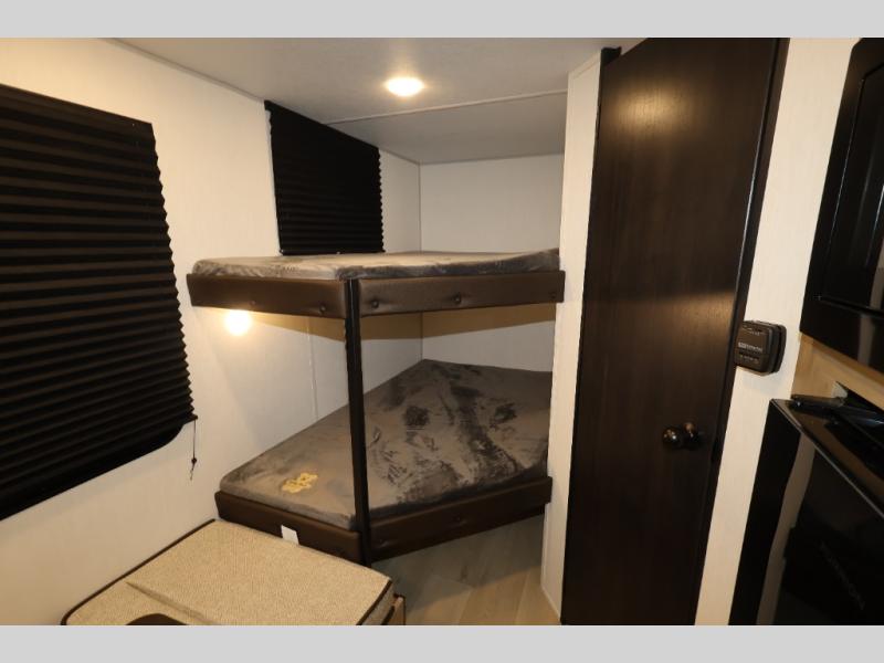 Create amazing memories in this stunning travel trailer! It is perfect for at least six people, thanks to its multiple sleeping spaces. The spacious double-sized bunk beds are ideal for kids or guests, while the plush queen-sized bed provides a restful retreat for adults. The full bathroom is equipped with everything you need for a comfortable stay, and the kitchen features a refrigerator and microwave for you to go wild in the kitchen. You can also gather around the dinette for meals and snacks, or relax in the evenings under the protection of the exterior awning. In addition, ample overhead cabinets provide storage for cookware, dishes, and essentials, keeping your trailer tidy and organized.