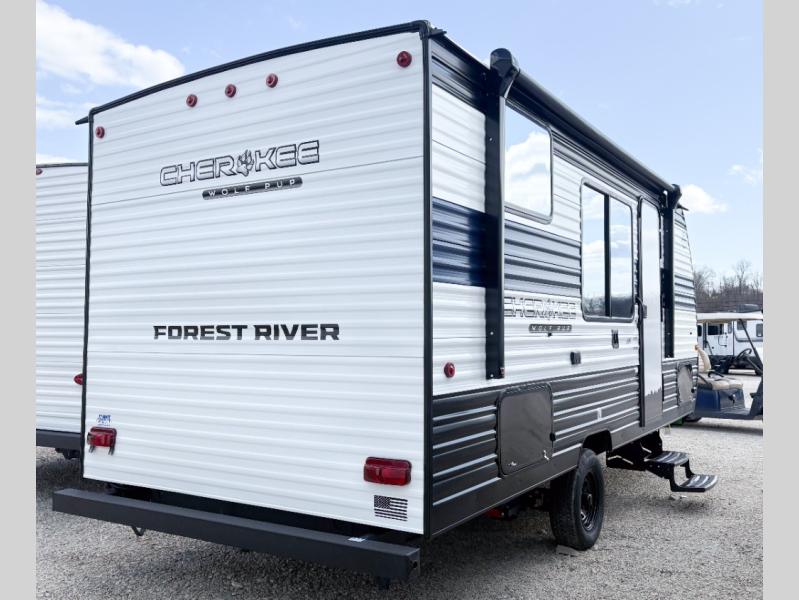 Each one of these Forest River Cherokee Wolf Pup travel trailers and toy hauler are lightweight and easy to tow! They are fully self-contained with ample tank capacities, an abundance of storage space, and filled with at home amenities. The full bath and kitchen amenities will make life at the campground easier than ever, and the outdoor patio awning will provide an inviting outdoor space!