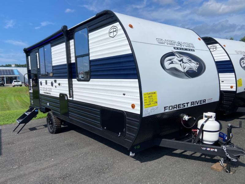 Each one of these Forest River Cherokee Wolf Pup travel trailers are lightweight and easy to tow! They are fully self contained with ample tank capacities, an abundance of storage space, and filled with at home amenities. The aerodynamic smooth radius front profile, the Power Gear frame technology, and the space saver rail design make them easier to maneuver. You will also appreciate the seamless roofing membrane with heat reflectivity to keep the sun from making your unit a hot box. The tongue and groove plywood flooring will hold up for years of fun and the USB charging stations help to keep your electronics at 100% while you're away. Come find the best model for you today!