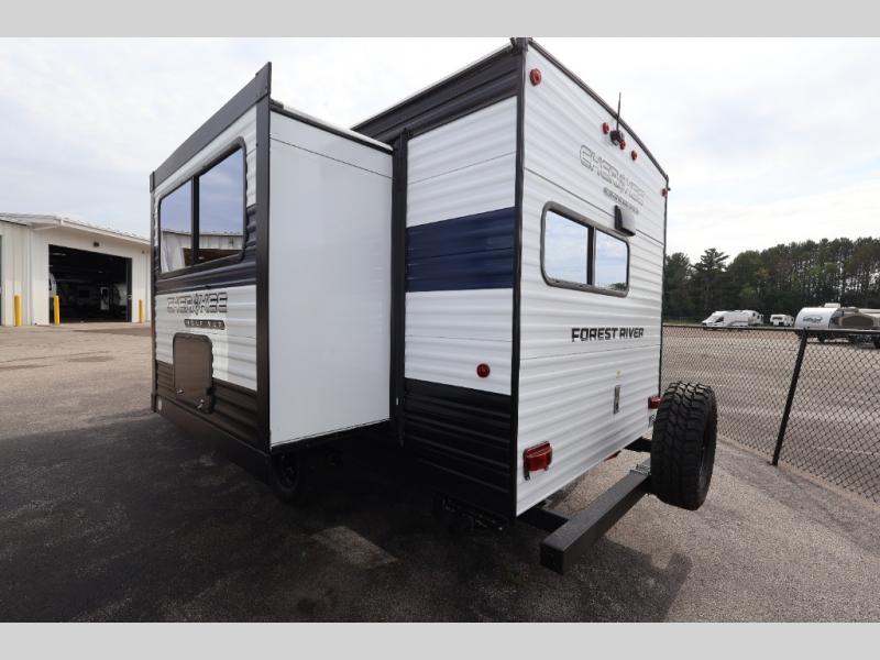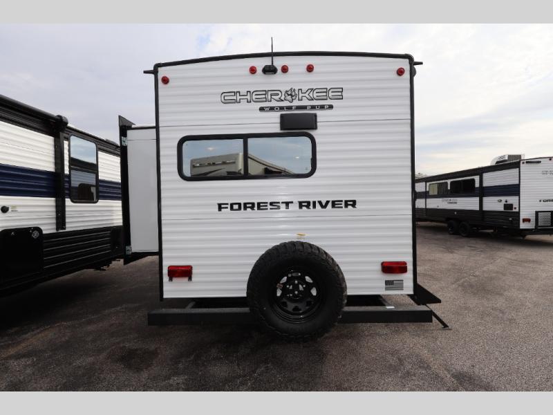 Each one of these Forest River Cherokee Wolf Pup travel trailers and toy hauler are lightweight and easy to tow! They are fully self-contained with ample tank capacities, an abundance of storage space, and filled with at home amenities. The full bath and kitchen amenities will make life at the campground easier than ever, and the outdoor patio awning will provide an inviting outdoor space!
