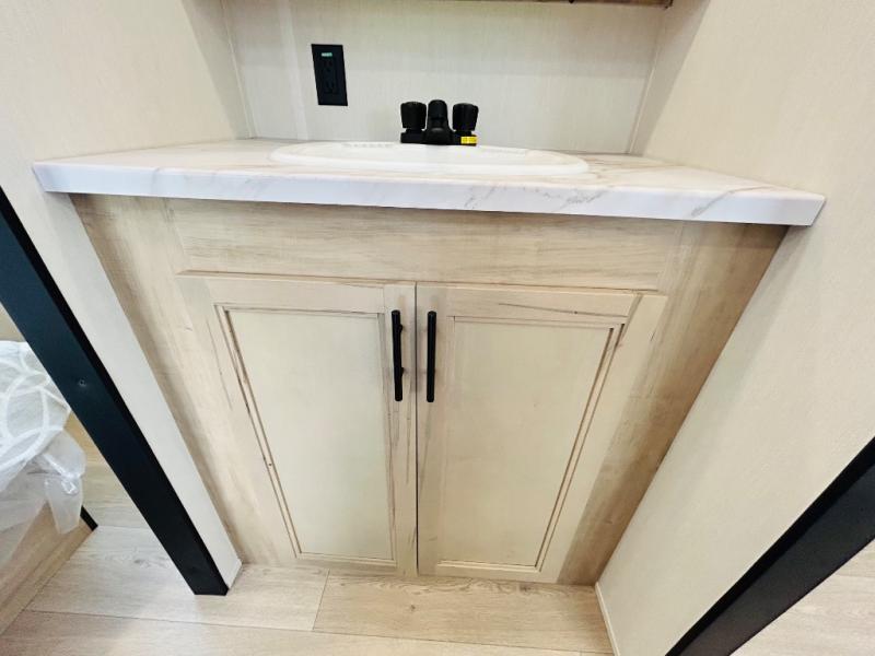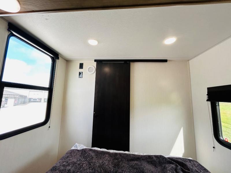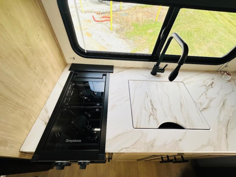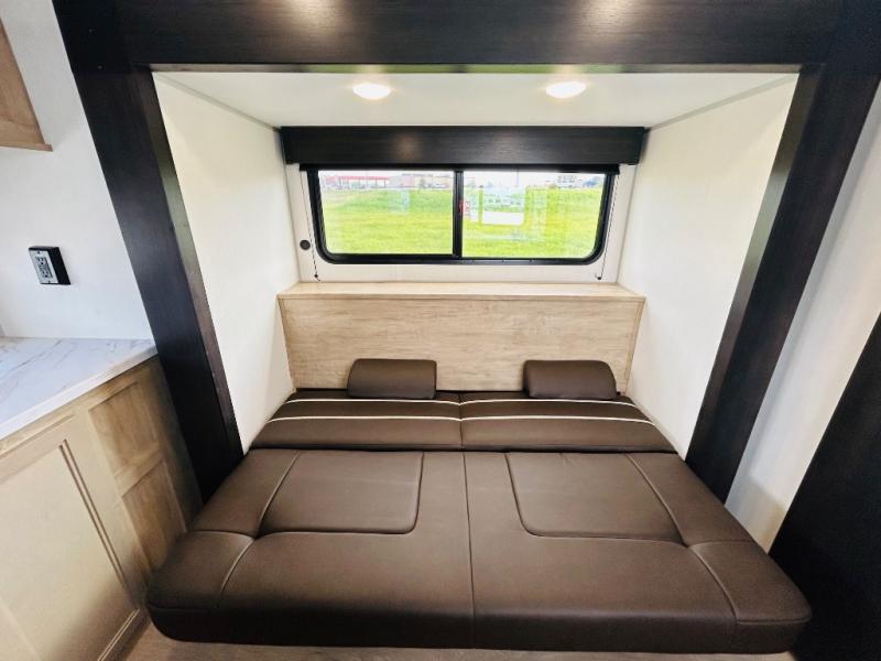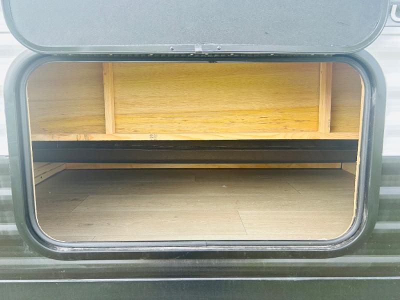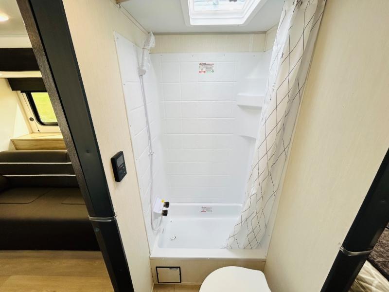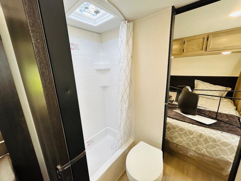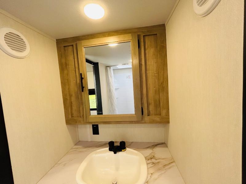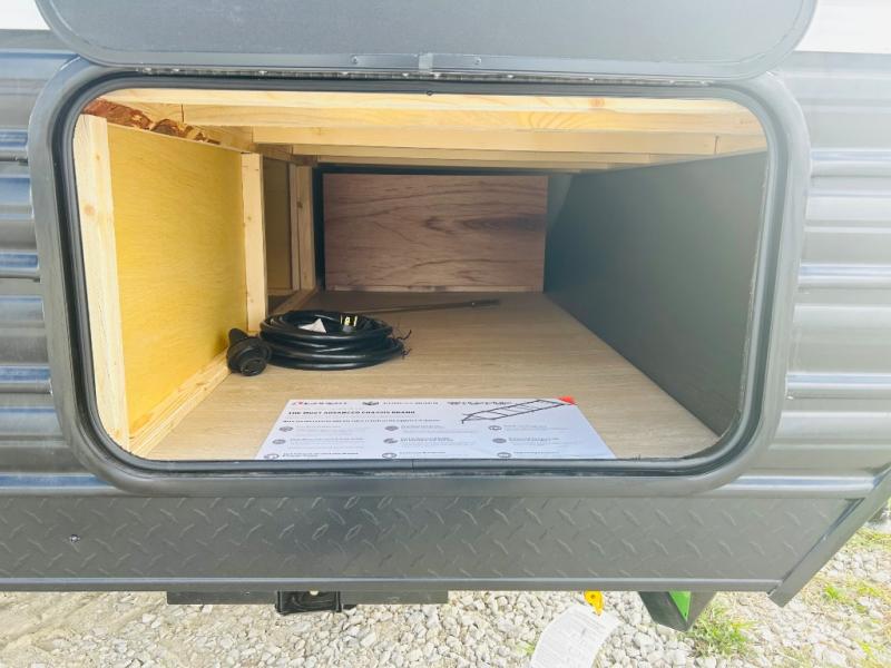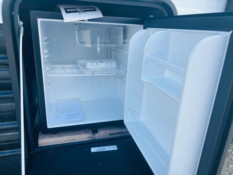 Convenient camping is found with this lightweight travel trailer! Once you arrive at your destination, put out the power awning, then make lunch on the exterior mini kitchen. Inside, you can dine at the bar top with stools, freshen up in the tub/shower, and sleep soundly on the queen bed in the master bedroom. There is also a sofa slide out to provide additional seating, sleeping, and interior space! And you're sure to find plenty of storage spaces both inside and outside, including a rear storage rack!
