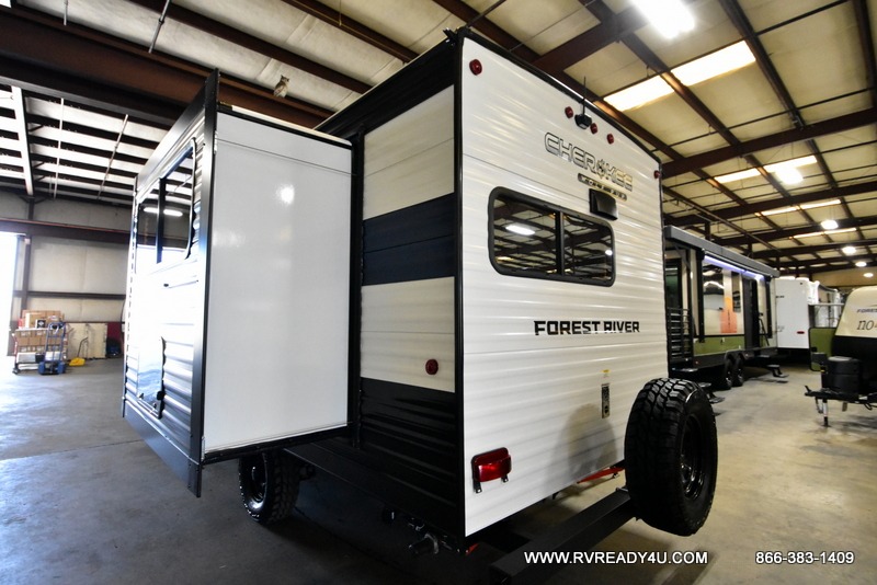 Each one of these Forest River Cherokee Wolf Pup travel trailers and toy hauler are lightweight and easy to tow! They are fully self-contained with ample tank capacities, an abundance of storage space, and filled with at home amenities. The full bath and kitchen amenities will make life at the campground easier than ever, and the outdoor patio awning will provide an inviting outdoor space!