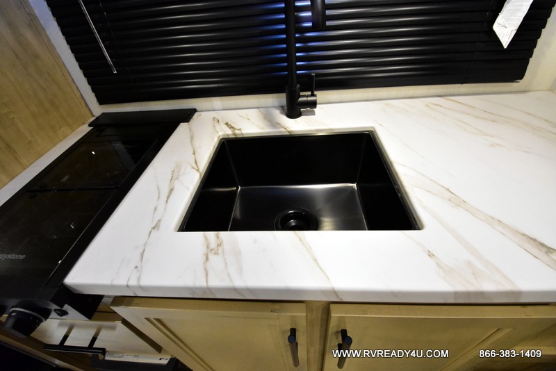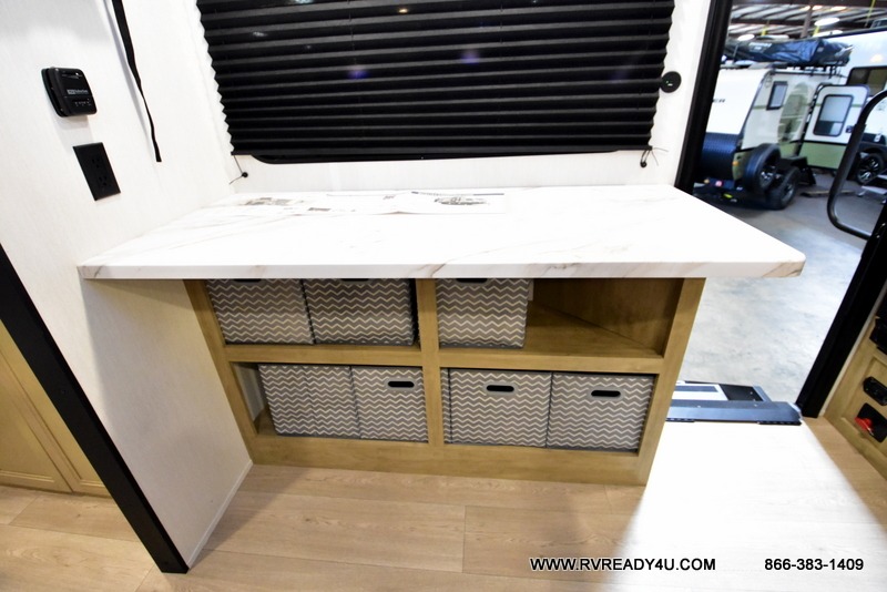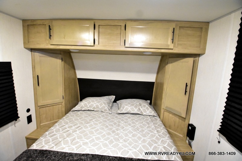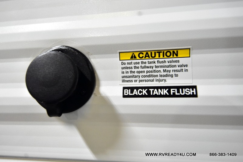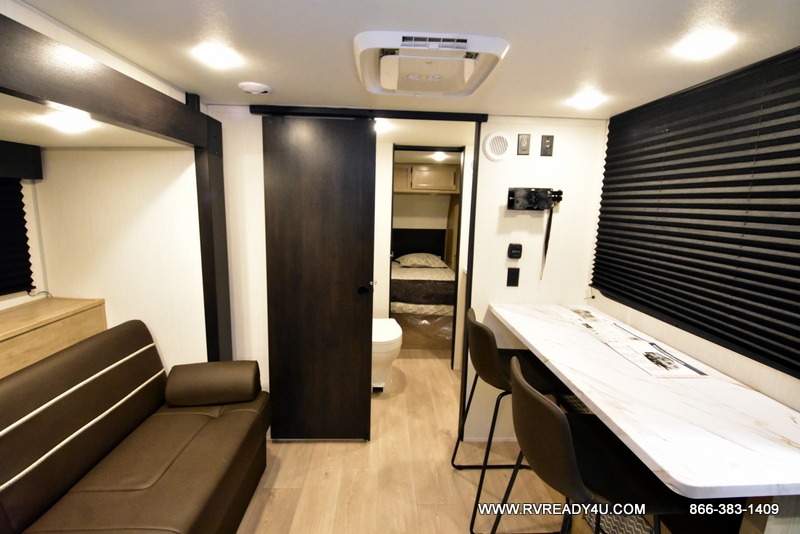 Convenient camping is found with this lightweight travel trailer! Once you arrive at your destination, put out the power awning, then make lunch on the exterior mini kitchen. Inside, you can dine at the bar top with stools, freshen up in the tub/shower, and sleep soundly on the queen bed in the master bedroom. There is also a sofa slide out to provide additional seating, sleeping, and interior space! And you're sure to find plenty of storage spaces both inside and outside, including a rear storage rack!