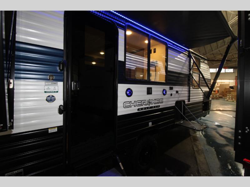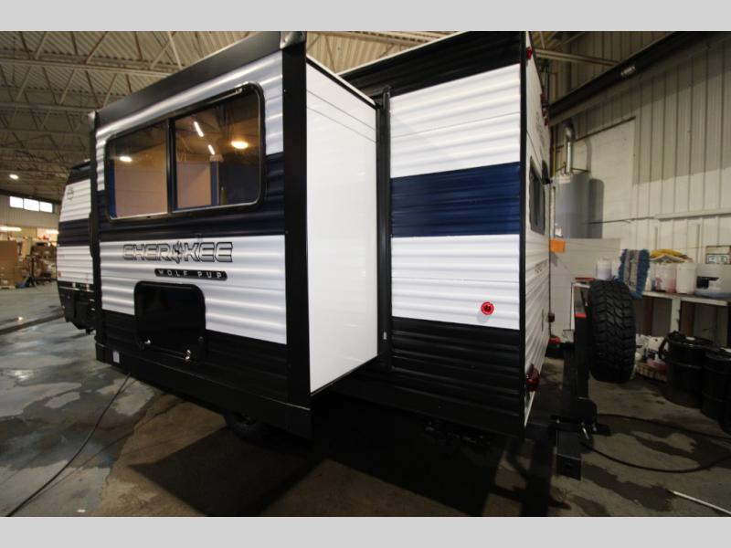 Each one of these Forest River Cherokee Wolf Pup travel trailers and toy hauler are lightweight and easy to tow! They are fully self-contained with ample tank capacities, an abundance of storage space, and filled with at home amenities. The full bath and kitchen amenities will make life at the campground easier than ever, and the outdoor patio awning will provide an inviting outdoor space!