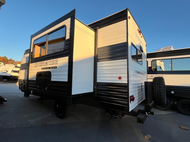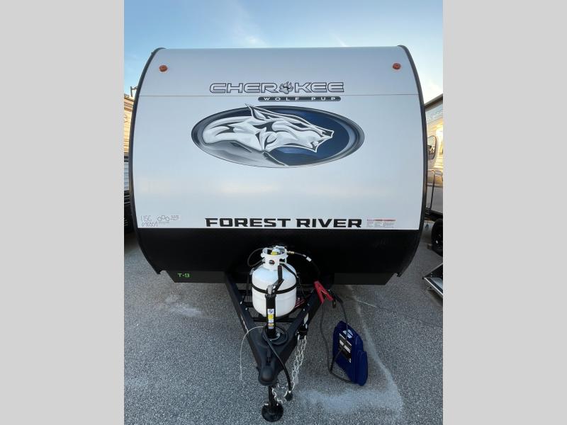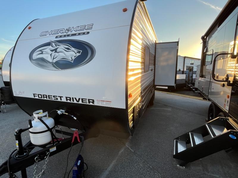 Each one of these Forest River Cherokee Wolf Pup travel trailers and toy hauler are lightweight and easy to tow! They are fully self-contained with ample tank capacities, an abundance of storage space, and filled with at home amenities. The full bath and kitchen amenities will make life at the campground easier than ever, and the outdoor patio awning will provide an inviting outdoor space!