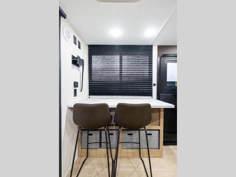 Convenient camping is found with this lightweight travel trailer! Once you arrive at your destination, put out the power awning, then make lunch on the exterior mini kitchen. Inside, you can dine at the bar top with stools, freshen up in the tub/shower, and sleep soundly on the queen bed in the master bedroom. There is also a sofa slide out to provide additional seating, sleeping, and interior space! And you're sure to find plenty of storage spaces both inside and outside, including a rear storage rack!