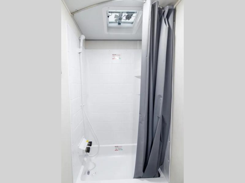 Convenient camping is found with this lightweight travel trailer! Once you arrive at your destination, put out the power awning, then make lunch on the exterior mini kitchen. Inside, you can dine at the bar top with stools, freshen up in the tub/shower, and sleep soundly on the queen bed in the master bedroom. There is also a sofa slide out to provide additional seating, sleeping, and interior space! And you're sure to find plenty of storage spaces both inside and outside, including a rear storage rack!
