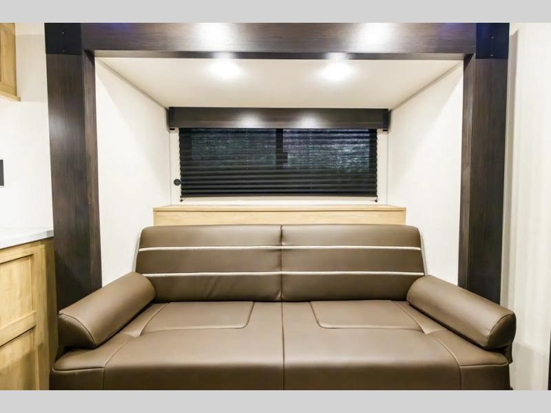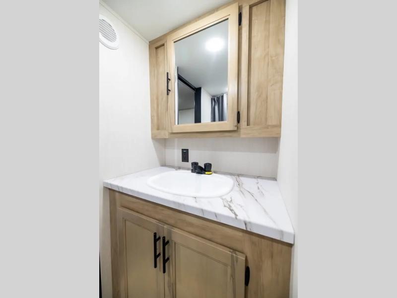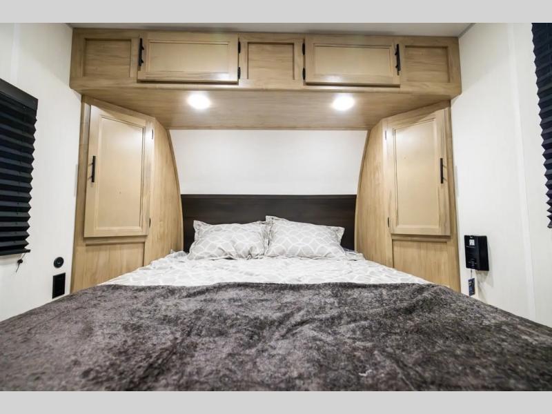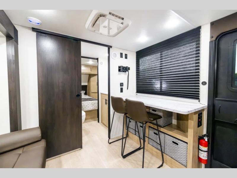 Convenient camping is found with this lightweight travel trailer! Once you arrive at your destination, put out the power awning, then make lunch on the exterior mini kitchen. Inside, you can dine at the bar top with stools, freshen up in the tub/shower, and sleep soundly on the queen bed in the master bedroom. There is also a sofa slide out to provide additional seating, sleeping, and interior space! And you're sure to find plenty of storage spaces both inside and outside, including a rear storage rack!
