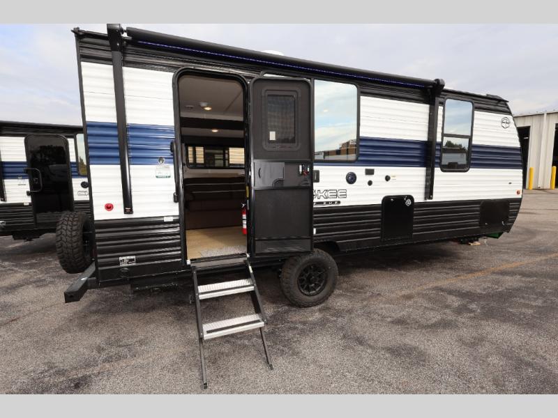 Each one of these Forest River Cherokee Wolf Pup travel trailers and toy hauler are lightweight and easy to tow! They are fully self-contained with ample tank capacities, an abundance of storage space, and filled with at home amenities. The full bath and kitchen amenities will make life at the campground easier than ever, and the outdoor patio awning will provide an inviting outdoor space!