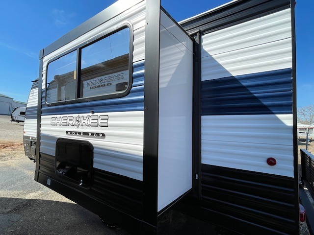 Each one of these Forest River Cherokee Wolf Pup travel trailers and toy hauler are lightweight and easy to tow! They are fully self-contained with ample tank capacities, an abundance of storage space, and filled with at home amenities. The full bath and kitchen amenities will make life at the campground easier than ever, and the outdoor patio awning will provide an inviting outdoor space!