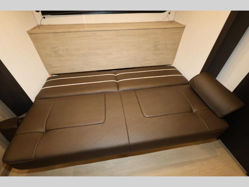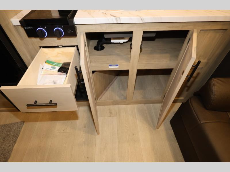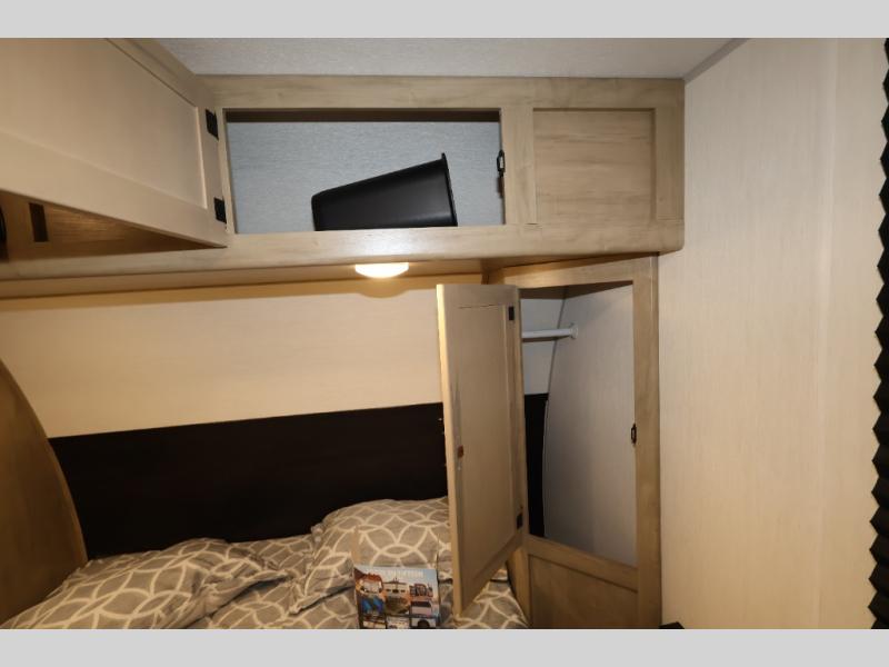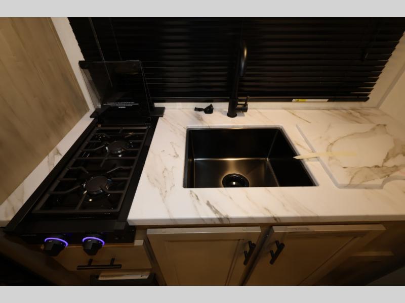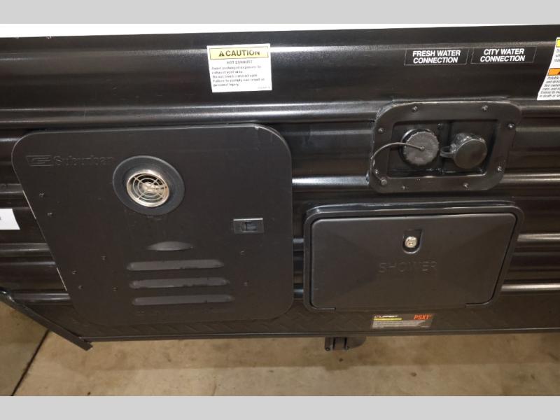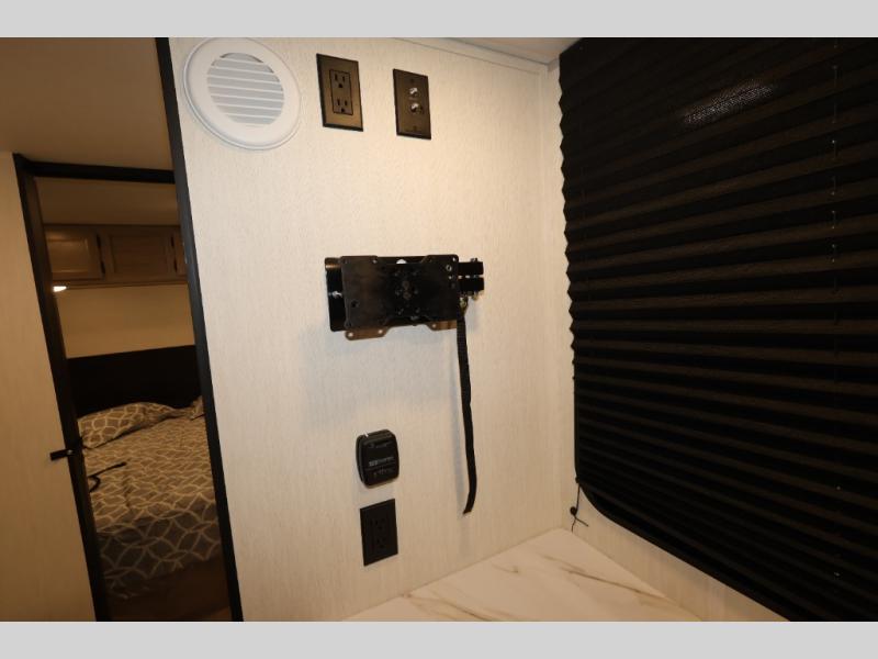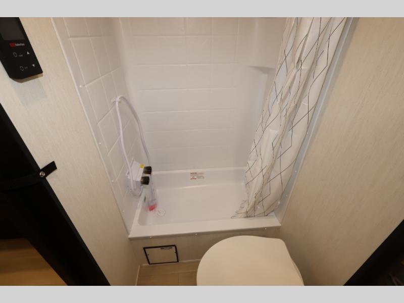 Convenient camping is found with this lightweight travel trailer! Once you arrive at your destination, put out the power awning, then make lunch on the exterior mini kitchen. Inside, you can dine at the bar top with stools, freshen up in the tub/shower, and sleep soundly on the queen bed in the master bedroom. There is also a sofa slide out to provide additional seating, sleeping, and interior space! And you're sure to find plenty of storage spaces both inside and outside, including a rear storage rack!